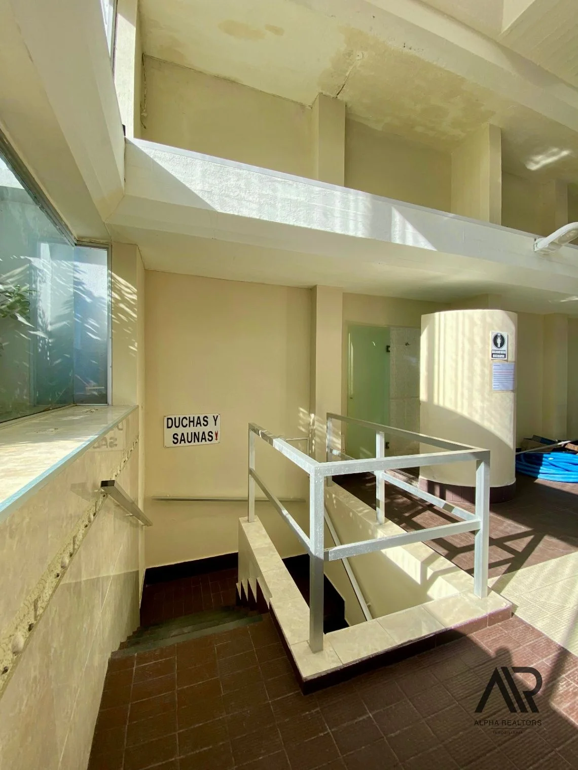 El edificio cuenta con amenities de primer nivel: piscina, sauna, gimnasio, spa, parrilleros y salón de uso común. Además, dispone de servicio de mucama diario, portería 24 hs, internet de alta velocidad, televisión por cable y garage en subsuelo.