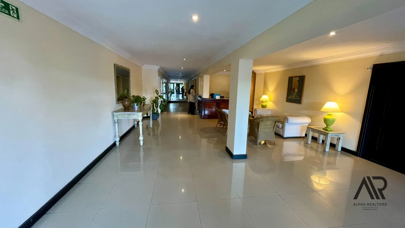 El edificio ofrece piscina abierta, barbacoa, cochera cubierta, aire acondicionado, WiFi, agua corriente y portería. Con orientación norte y rodeado de espacios verdes y a pasos de la playa, es una excelente opción para vivir.
