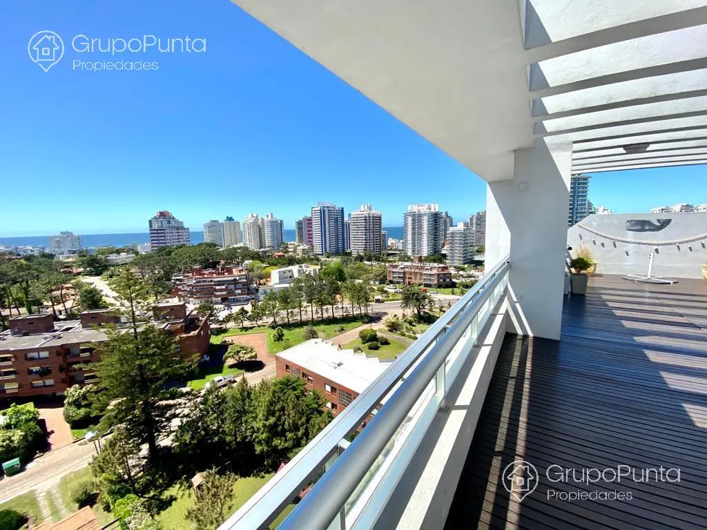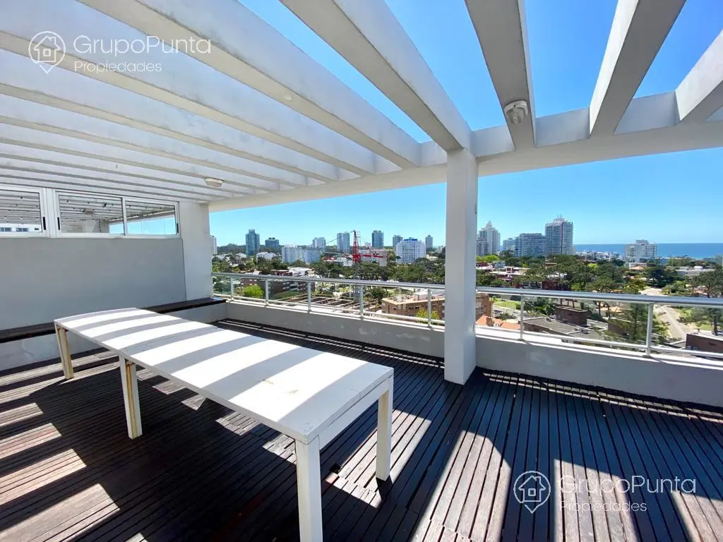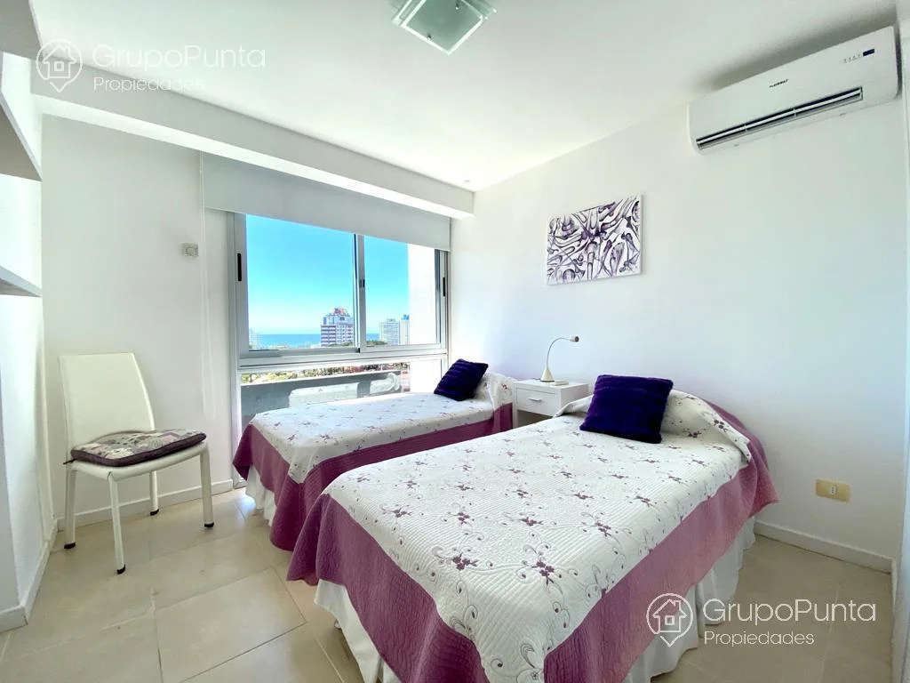 Apartamento de aprox 90 m2 con terraza exclusiva para el inquilino de aprox 60 m2 a 200 metros del mar con vista hacia la Playa Mansa.El departamento cuenta con 3 dormitorios (uno en suite) y terraza, junto con acceso al segundo piso con terraza exclusiva con parrillero. Todos los dormitorios y el living cuentan con aire acondicionado.Cuenta con un baño social y una cocina totalmente equipada con dos piletas individuales, lavarropa y lavavajillas.El apartamento cuenta con un balcón amplio aparte de la terraza exclusiva en Penthouse con entrada independiente al apartamento.Cuenta con todos los servicios.ServiciosAmplio lobby en recepción con tres ascensores de ultima generaciónEstacionamiento de cortesía en PBPlayroom para adolescentes en PBWi fiHome TheaterSPASaunaMasajes, área de yoga, relajación , pilatesGimnasio equipado con modernas maquinasPiscina in-out climatizadaPiscina de 20 x 50 mts con sector para niñosAmplio solariumÁrea de parrillas con quinchos integrablesBaños vestuarios en zona piscinaEquipado con la mas alta tecnología en comunicacionesPortero eléctrico, telefonía, Wi Fi banda ancha en todas las unidadesControl de accesos y CCTVREF: PROP1094