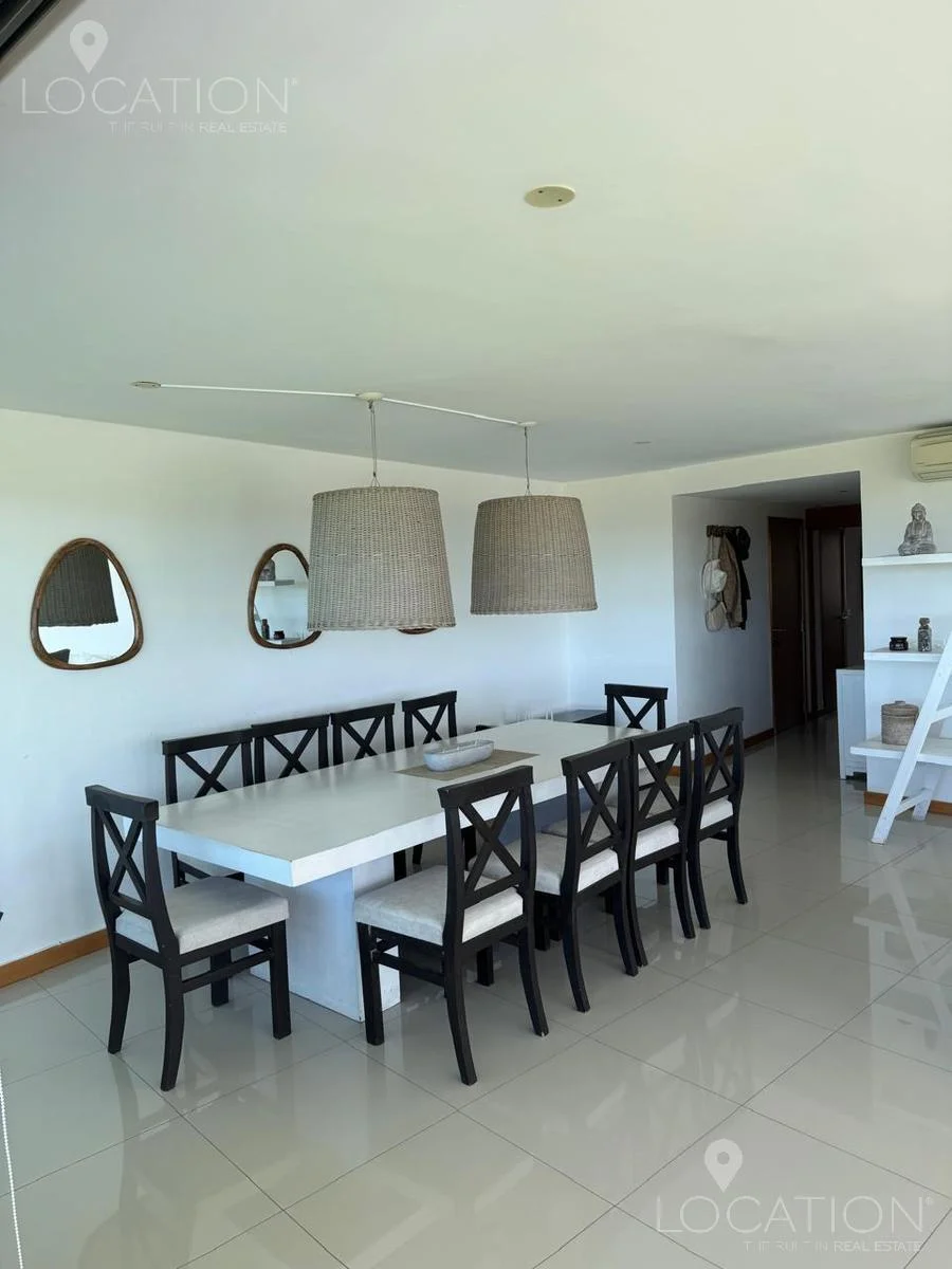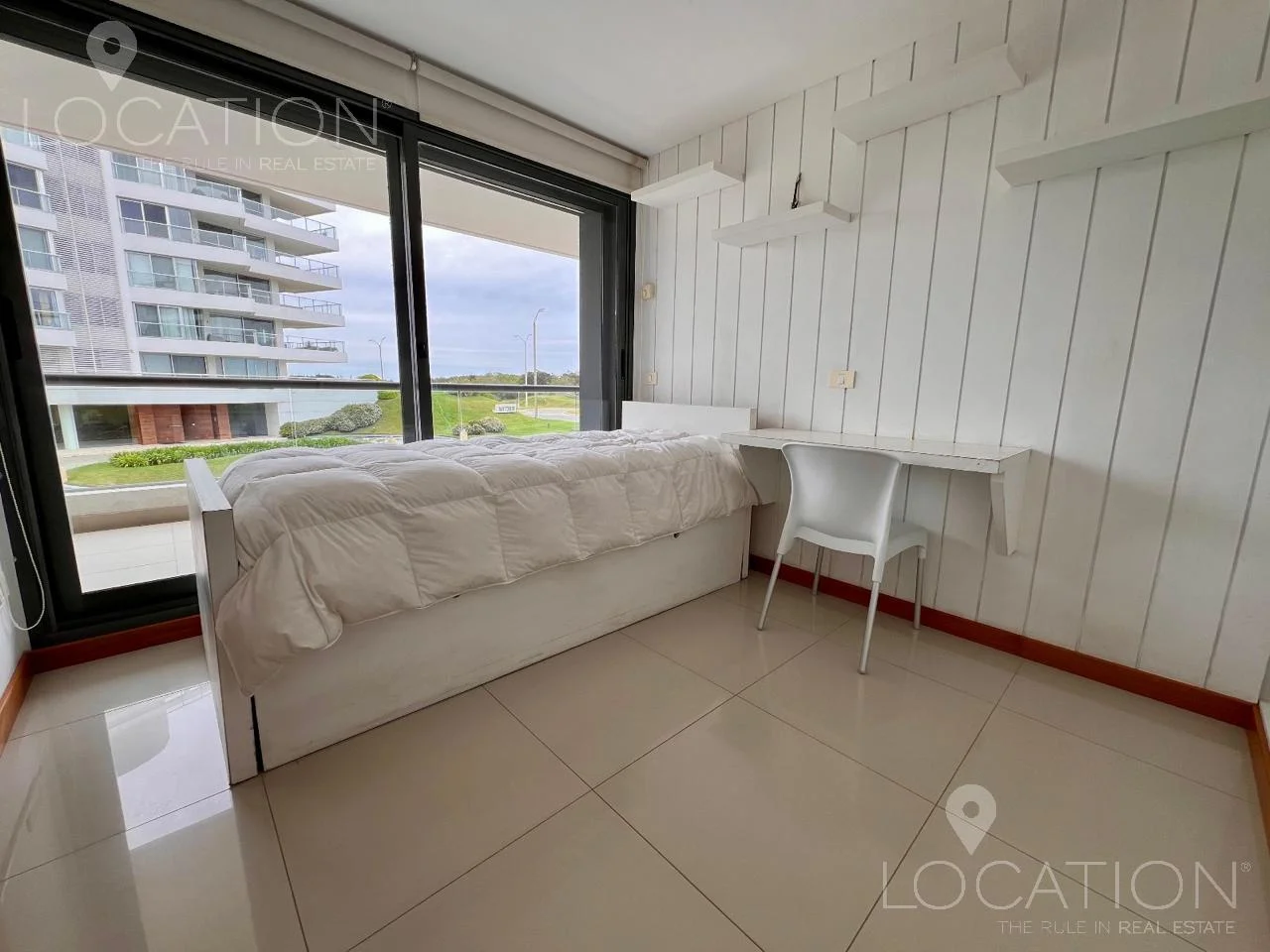 Gran apartamento estratégicamente ubicado sobre la parada 31 de la playa brava, a minutos de Punta del Este y poca distancia de La Barra. Esta gran unidad cuenta con un living comedor de buenas dimensiones ambos con una espectacular vista al mar. Cocina súper equipada, y decoración de buen gusto. Los dormitorios son cómodos y luminosos: Tiene cuatro dormitorios: Suite principal, mas dos dormitorios con dos camas cada uno y dependencia de servicio; todos en suite. Cada ambiente tiene aire acondicionado. A todo esto se le suma los amplios amenities del edificio, como gimnasio, piscina exterior e interior, playroom y parrillero.