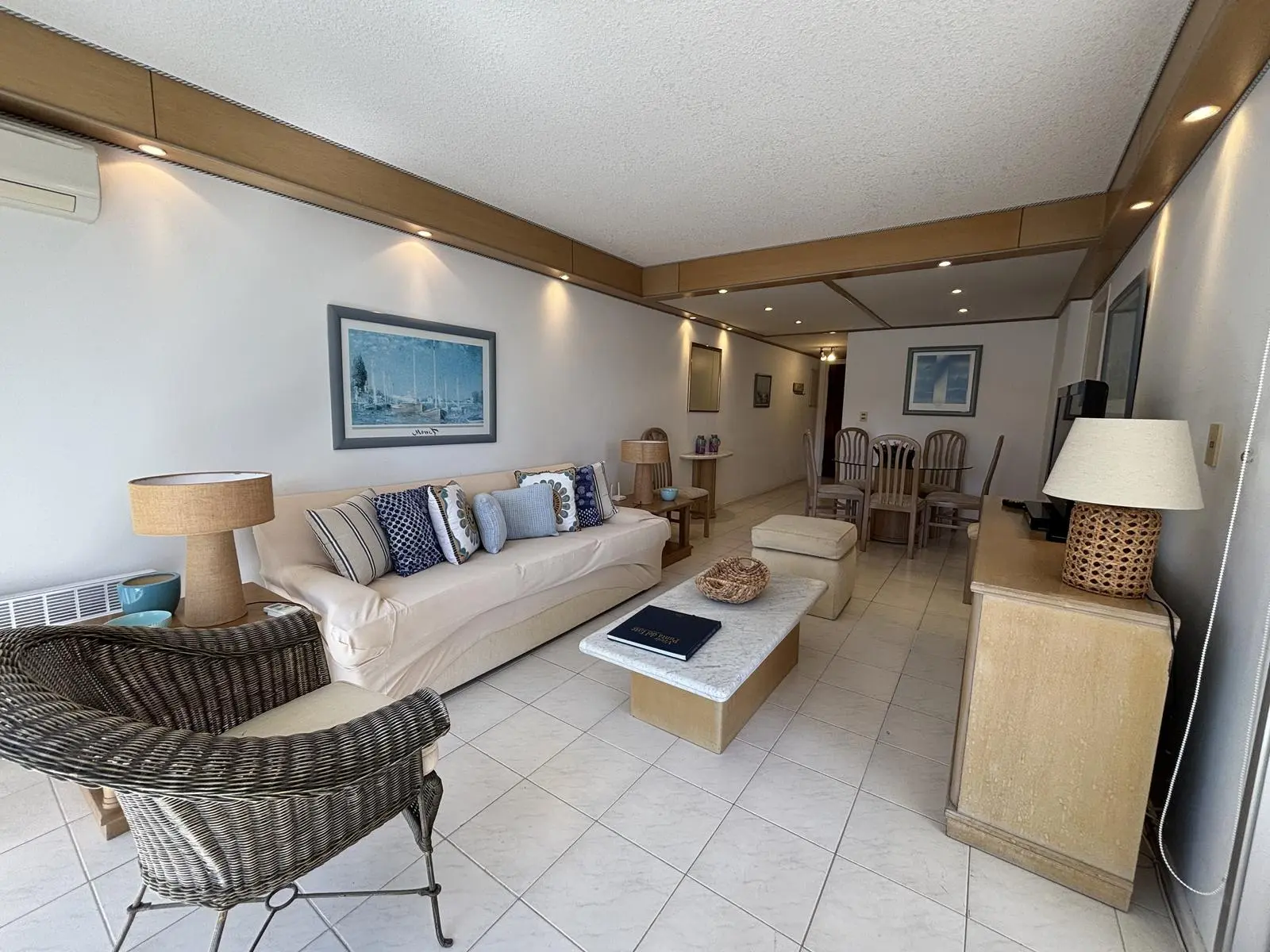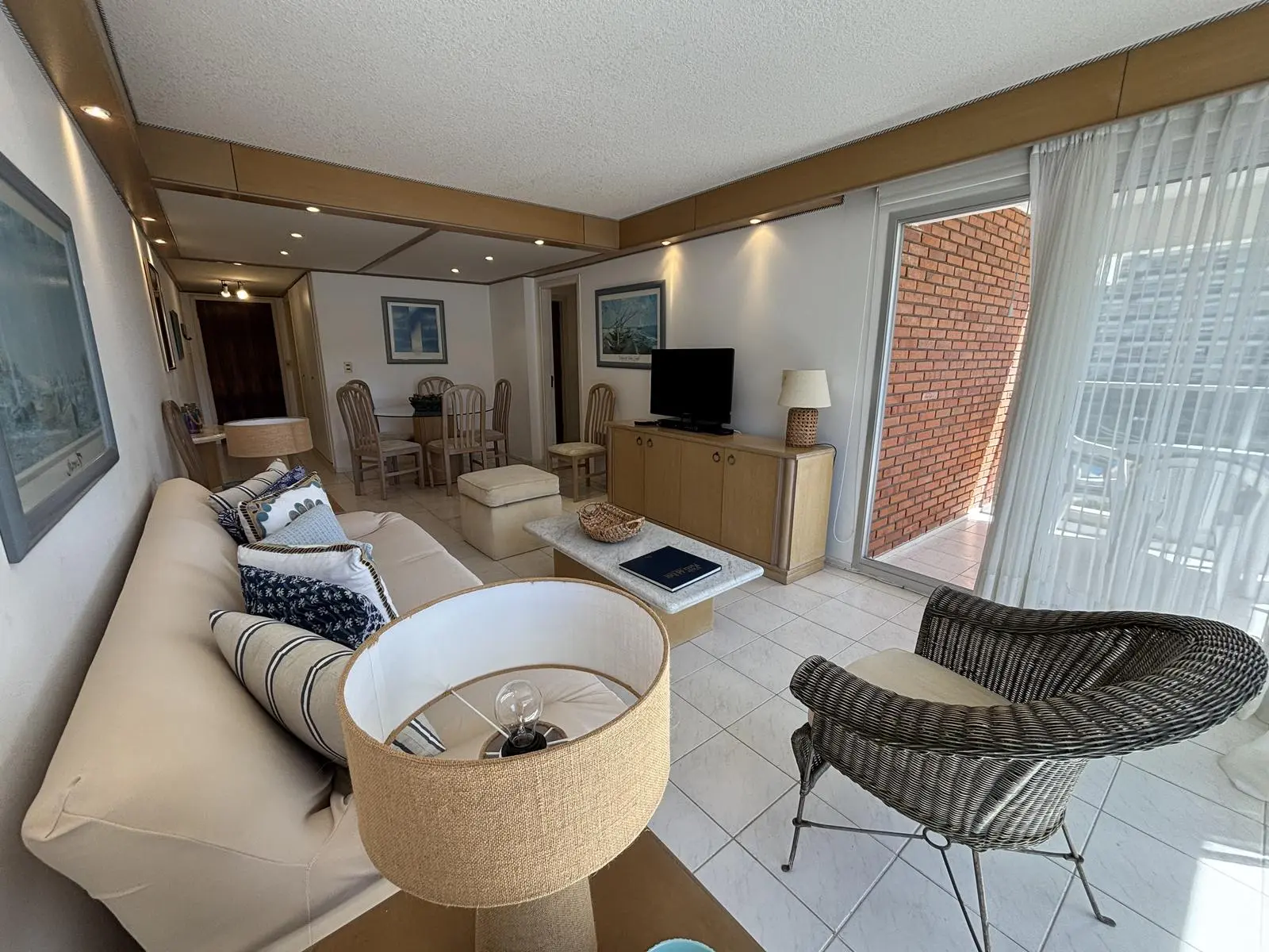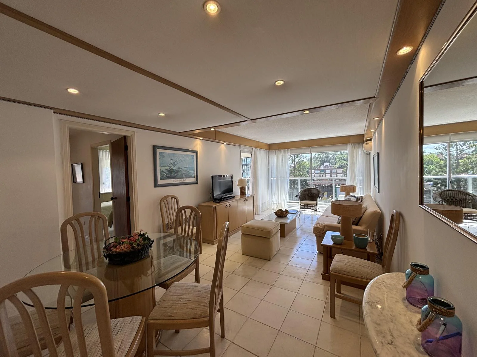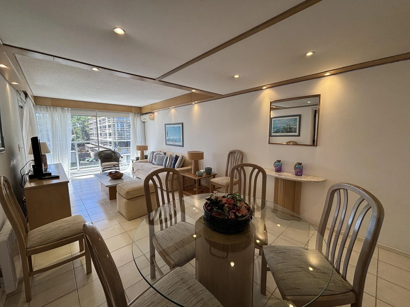 Cómodo living comedor con salida a terraza y vista al mar.