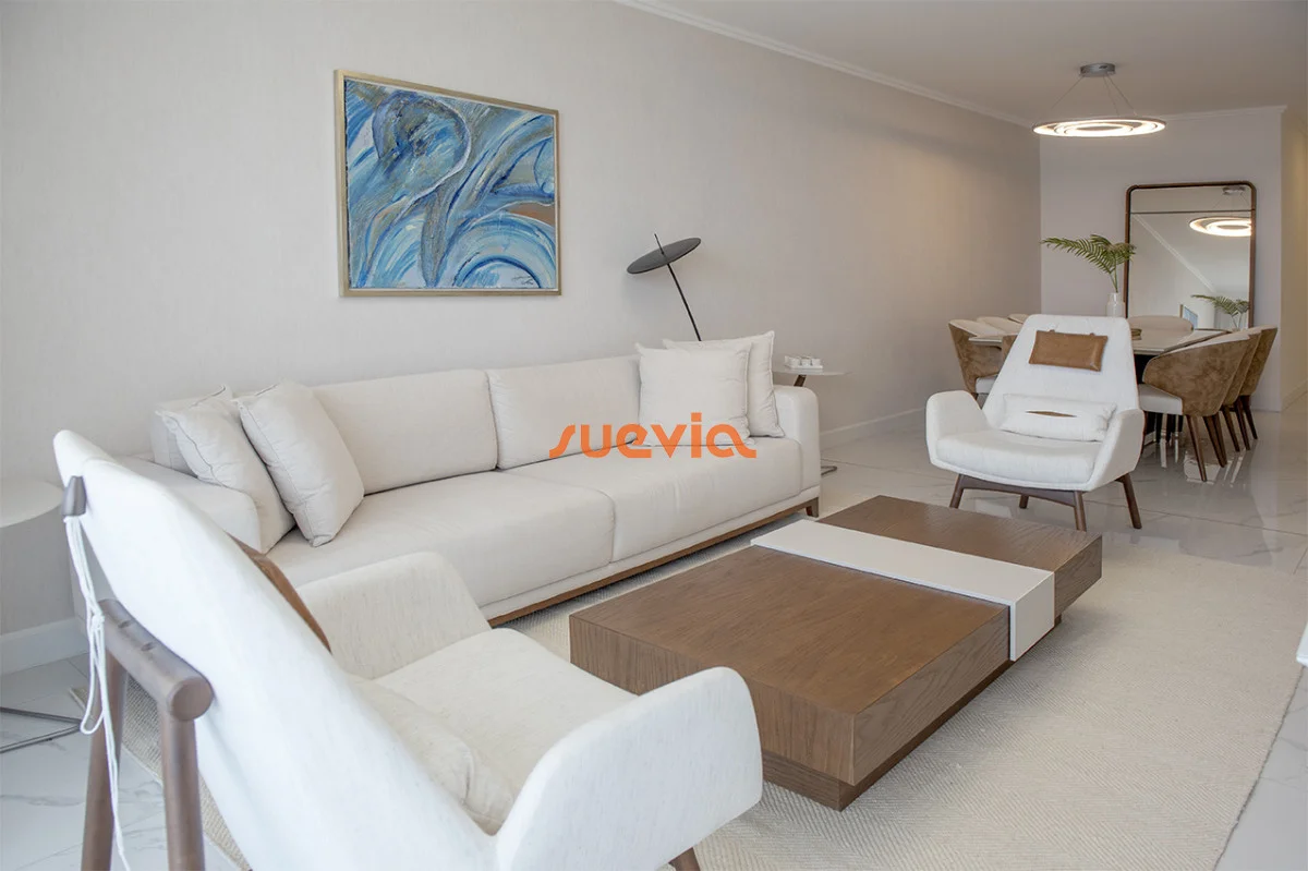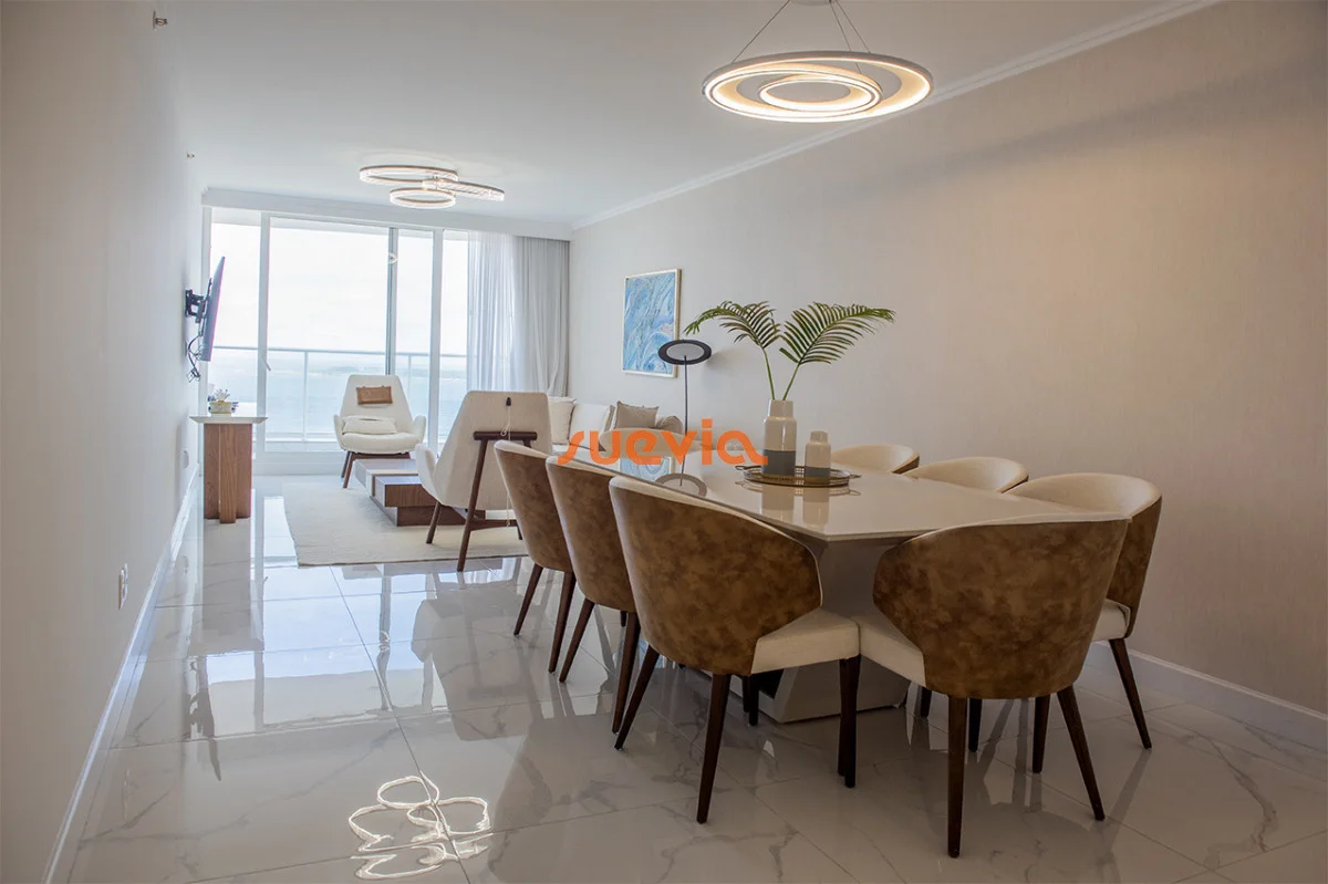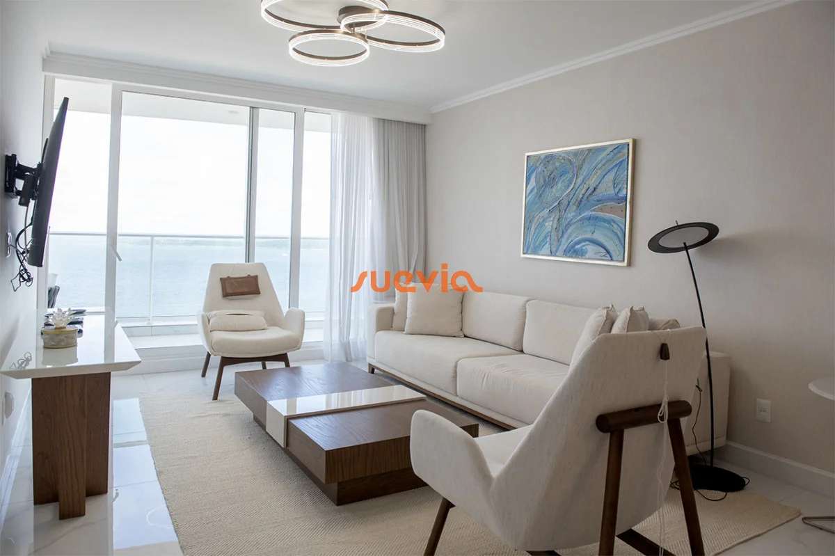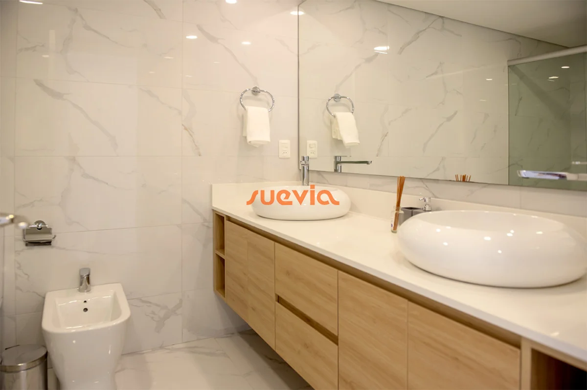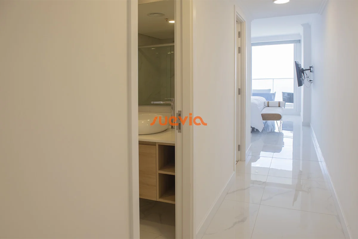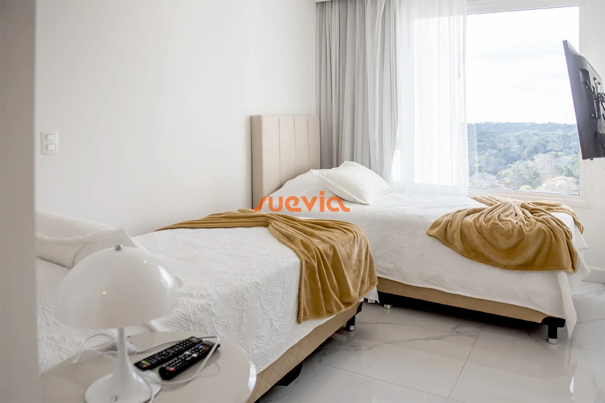 La unidad cuenta con 3 dormitorios, todos en suite, y 3 baños, lo que garantiza privacidad y comodidad para cada uno de sus ocupantes. Con capacidad para 6 personas y equipada con 3 camas, es ideal para familias o grupos de amigos que buscan disfrutar de la playa con estilo. El área social se desarrolla en un generoso living comedor que se conecta con una cocina muy bien equipada, pensada tanto para el uso diario como para ocasiones especiales.