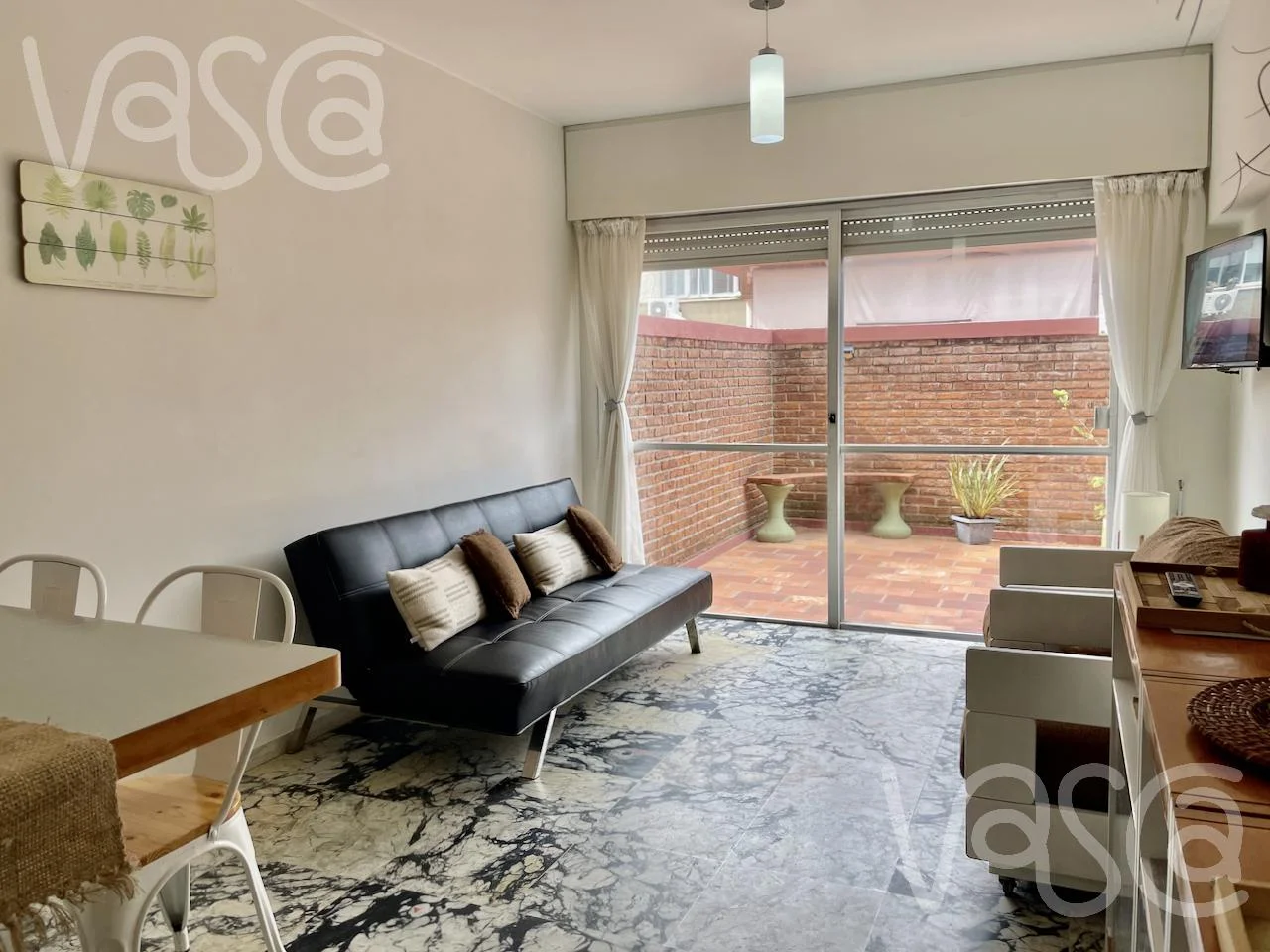 En el corazón de Punta del Este y a solo una cuadra de Playa El Emir, este apartamento tiene una ubicación inmejorable.Cuenta con un dormitorio, un sillón cama en el living, cocina definida y un patio ideal para disfrutar al aire libre después de un día de playa.Está rodeado de restaurantes, cafés, tiendas y supermercados, por lo que ofrece todo lo necesario para una estadía cómoda y práctica.Disponible para alquiler temporal.
