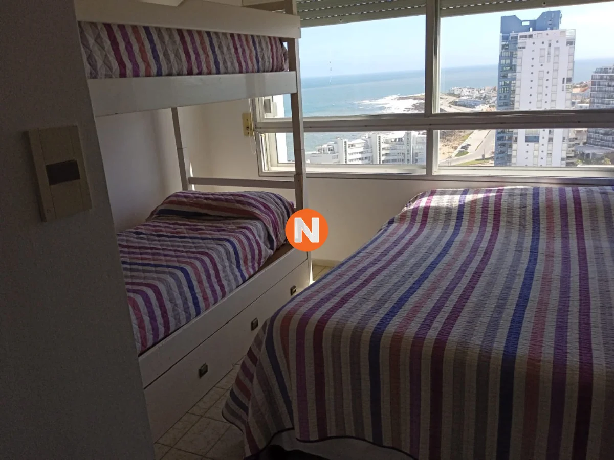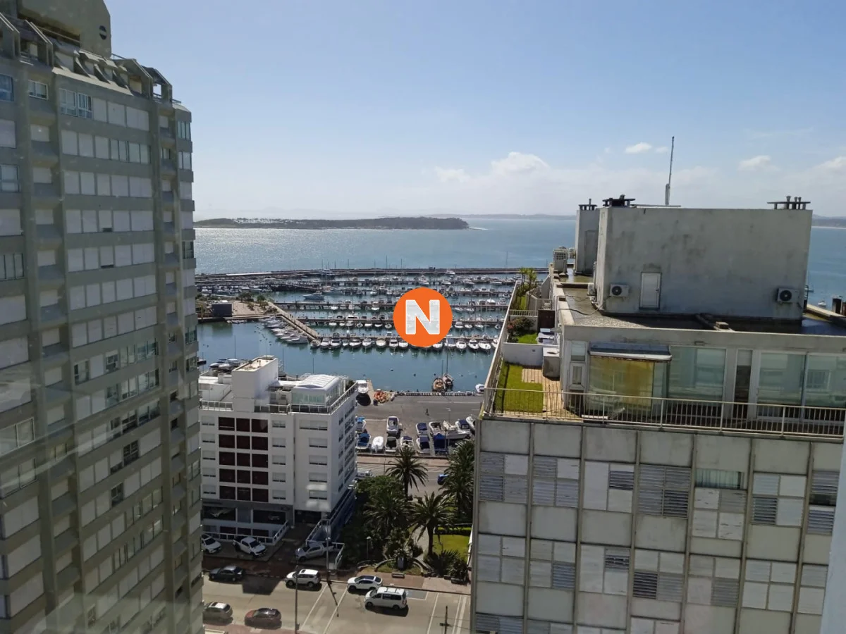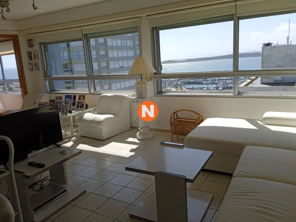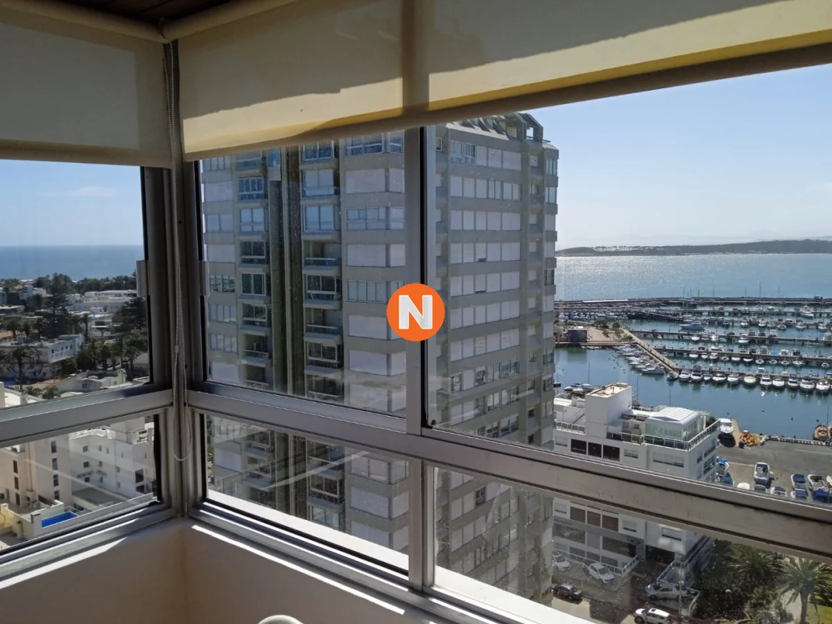 IMPACTANTES VISTAS !!! Amplio living comedor con espectacular vista al Puerto y Bahía de Playa Mansa, terraza cerrada, 3 dormitorios con vista a Playa Brava, 2 baños (ppal en suite), cocina equipada y garaje. Servicio de mucamas, piscina climatizada, sauna, barbacoas y sala de juegos, gym, sala de lectura y recepción 24 hs.-
