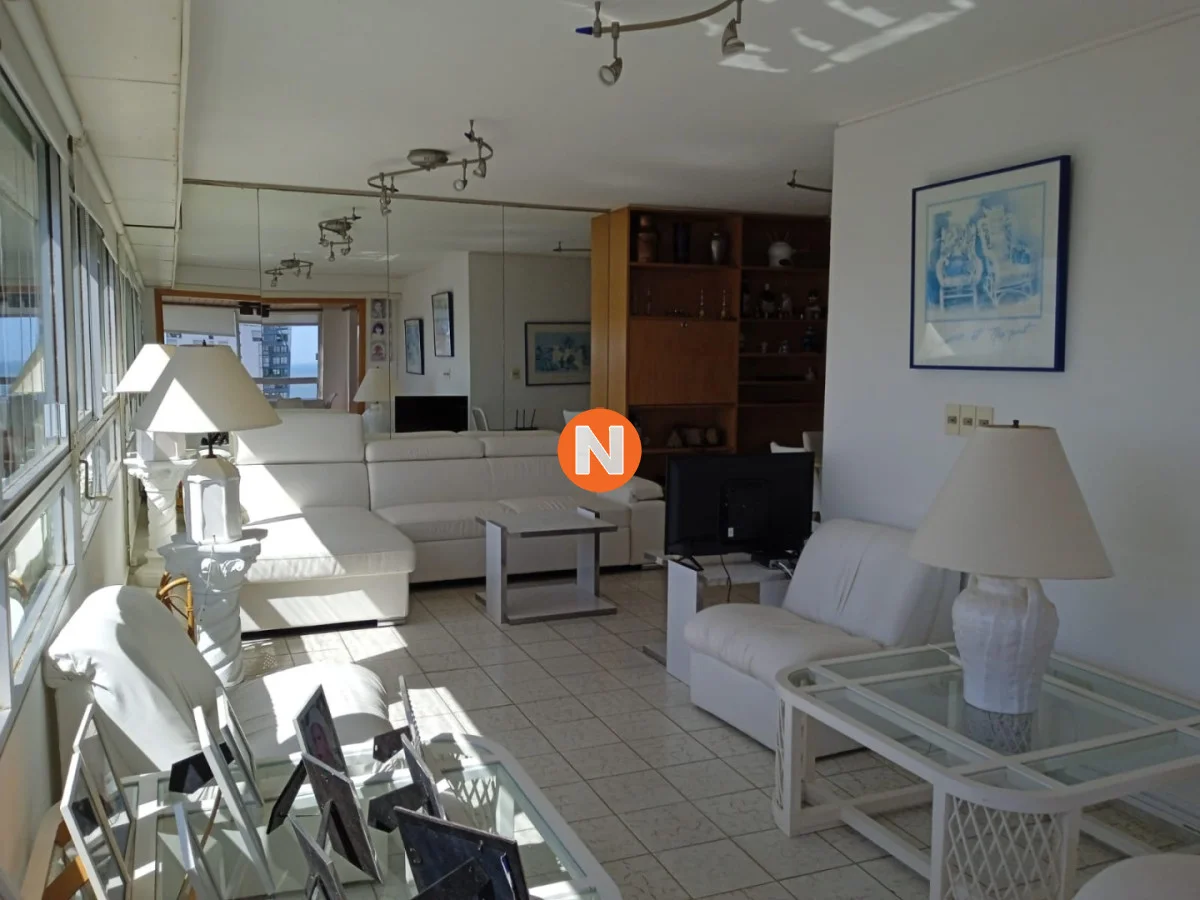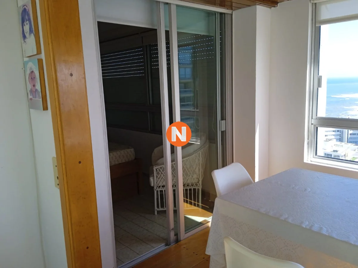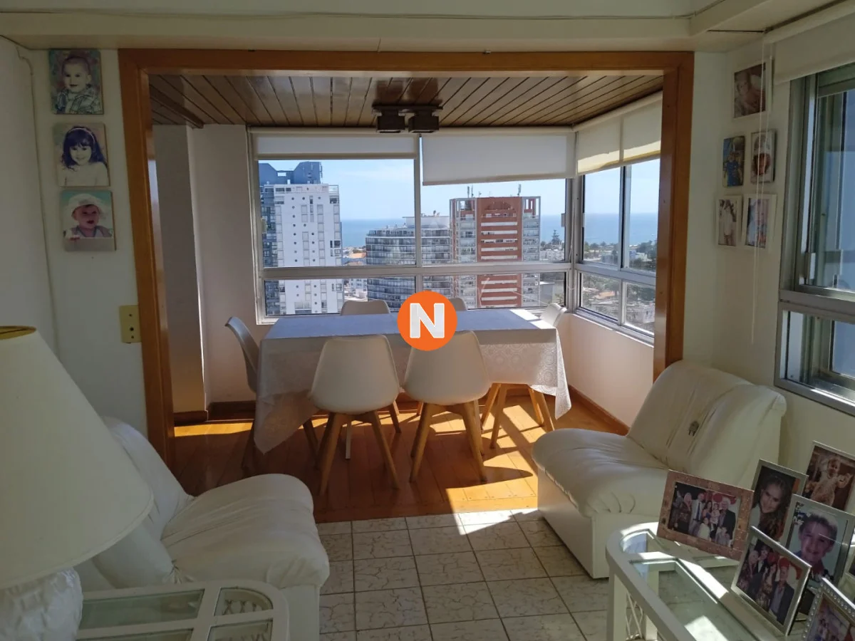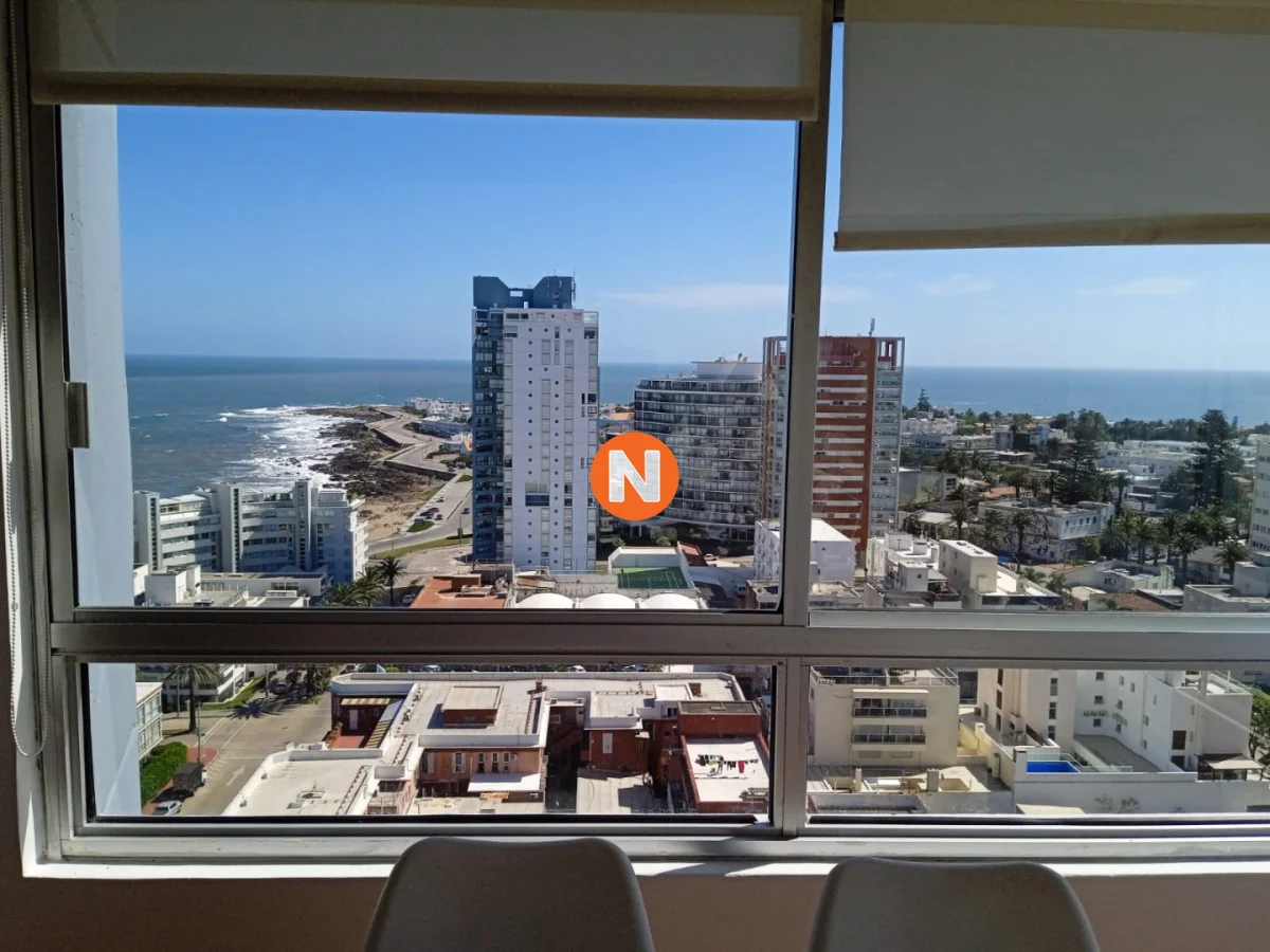 IMPACTANTES VISTAS !!! Amplio living comedor con espectacular vista al Puerto y Bahía de Playa Mansa, terraza cerrada, 3 dormitorios con vista a Playa Brava, 2 baños (ppal en suite), cocina equipada y garaje. Servicio de mucamas, piscina climatizada, sauna, barbacoas y sala de juegos, gym, sala de lectura y recepción 24 hs.-