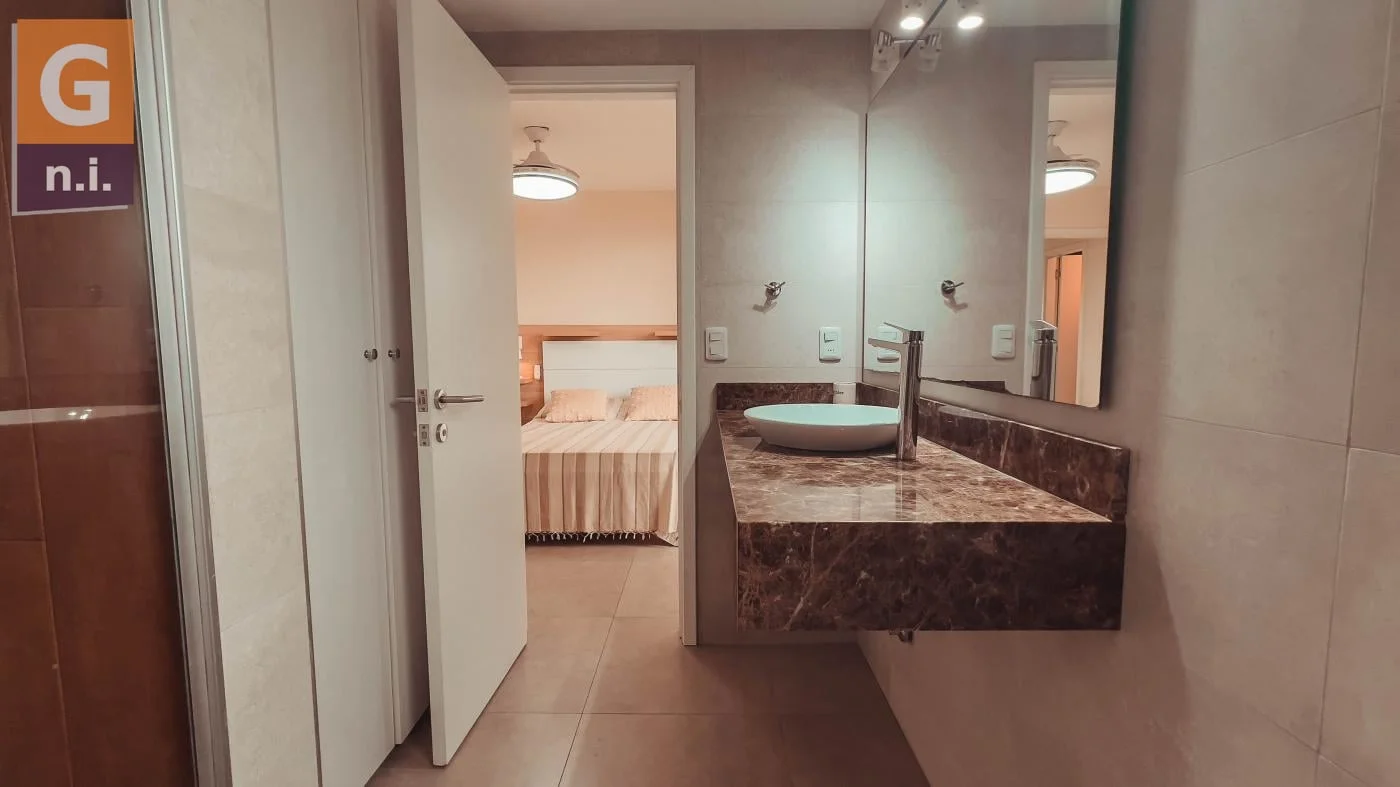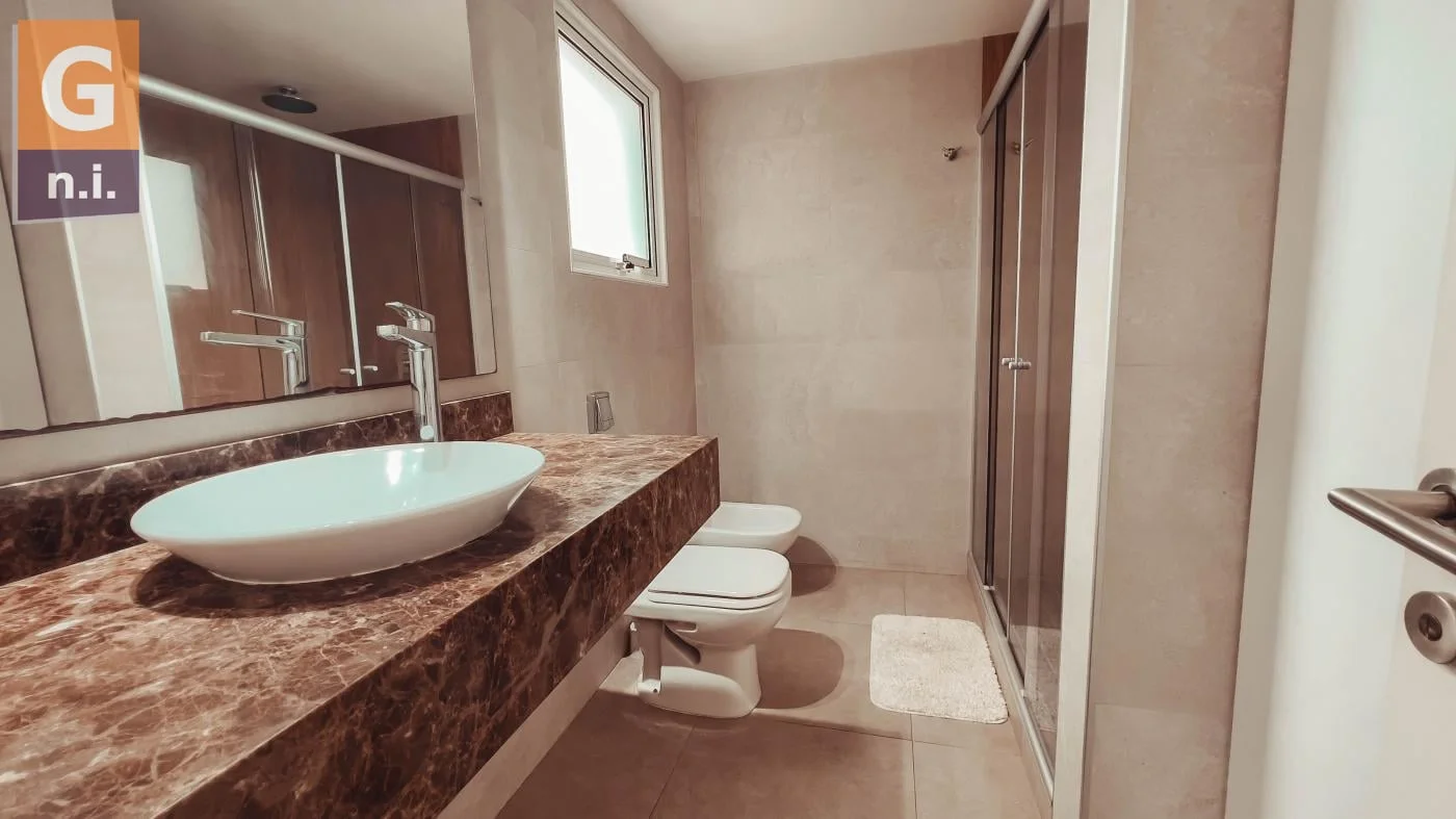 Apartamento en el Reconquista Building para alquilar anualmente, cerca de todos los servicios. La unidad ubicada en el primer piso, cuenta con 67 m2 de interiores distribuidos en dos dormitorios, cada uno con baño en suite y un baño de servicio, living comedor y cocina.