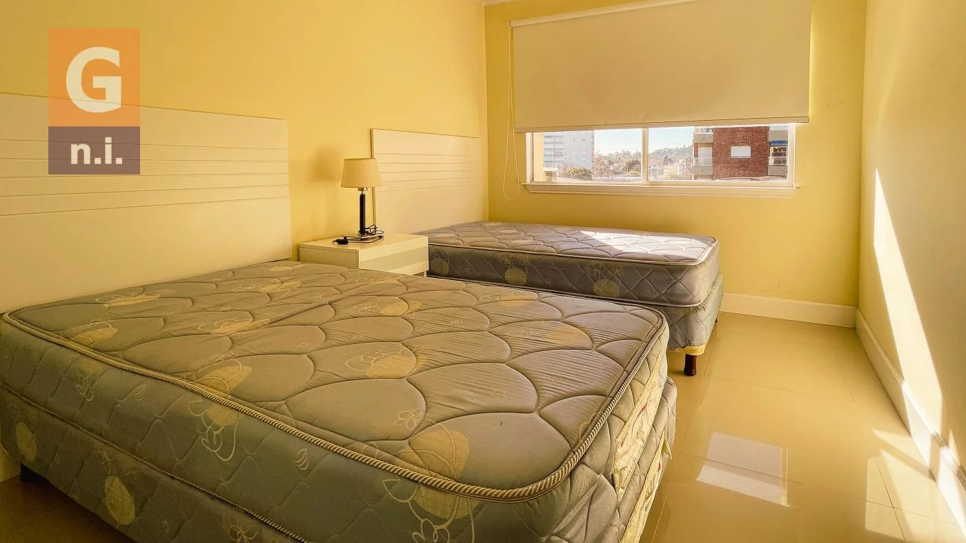 Alquilamos un cómodo apartamento en el edificio Puertos del Sol, ubicado a metros de la playa y rodeado de todos los servicios. La unidad se distribuye en un funcional living comedor, cocina definida, baño completo, dos dormitorios y un agradable balcón.