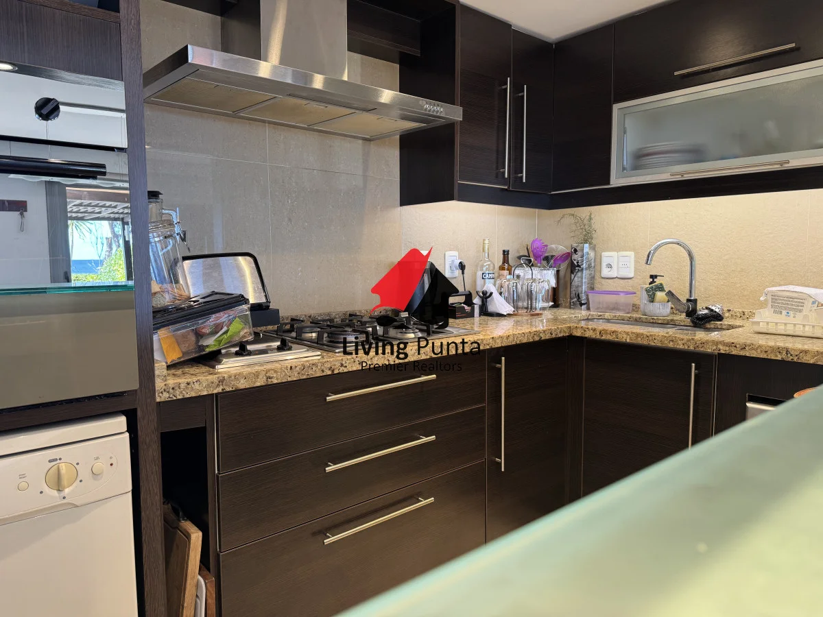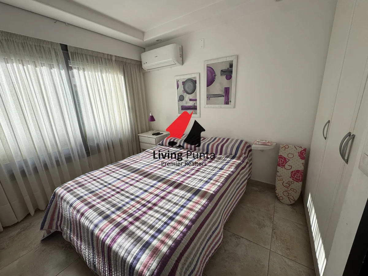 La unidad se destaca por su cocina completa, ideal para preparar deliciosas comidas, y un amplio living comedor que invita a compartir momentos inolvidables con familiares y amigos. Además, podrás relajarte y disfrutar del sol en la piscina del edificio, un verdadero oasis en medio de la vibrante vida de Punta del Este.