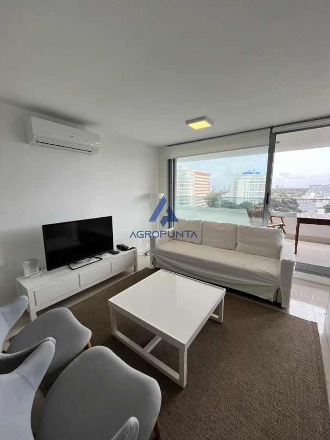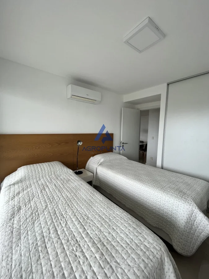 Luminoso y cómoda apartamento en Parada 6 Brava Terraza amplia con orientación hacia la Mansa Living comedor Dos dormitorios dos Baños uno en suite Medio dormitorio o dormitorio huéspedes con baño Cocina integrada Aire acondicionado Televisor telefunken pantalla LD FULL HD PUNTA CABLE WIFI ILIMITADO .servicio de mucamas SERVICIO DE PLAYA Se incluye un juego de sábanas por cama y un juego de toallas por persona. Amenities: gimnasio, pileta y solárium, 2 parrilleros, sauna, sala de masajes, sala de juegos para grandes y para chicos. Incluye Cochera cubierta. Referencia Interna : Tera-9034