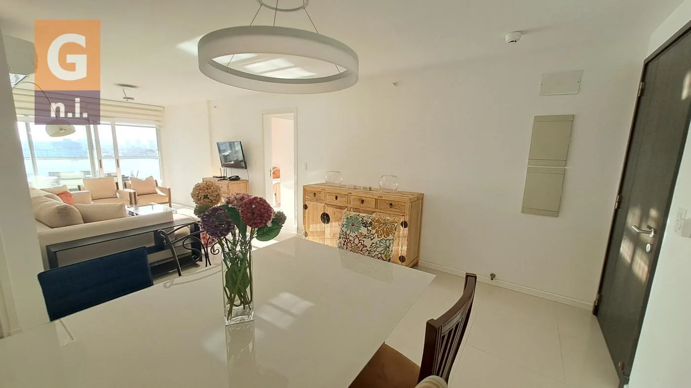 La misma cuenta con amplio living comedor, cocina definida, dos dormitorios, dos baños (uno en suite), gran terraza con vista hacia la mansa y garaje de uso exclusivo de la unidad.