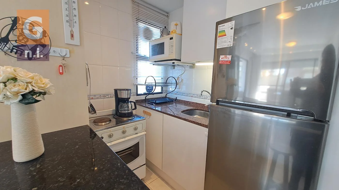 El apartamento cuenta con un espacioso y luminoso living comedor, la cocina se encuentra integrada en el espacio y está completamente equipada.