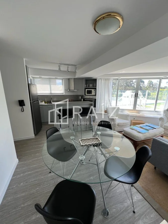 La cocina integrada se abre a un amplio living comedor, creando un ambiente perfecto para entretener a los invitados o disfrutar de una cena tranquila. Pero eso no es todo, este apartamento ofrece servicios de mucamas y de playa para que pueda relajarse y disfrutar de su tiempo libre sin preocupaciones.