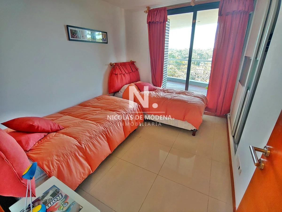 Tres dormitorios, el principal en suite, dos baños mas toilette, cocina definida con muy buen tamaño, amplio living comedor con terraza, vistas al bosque.