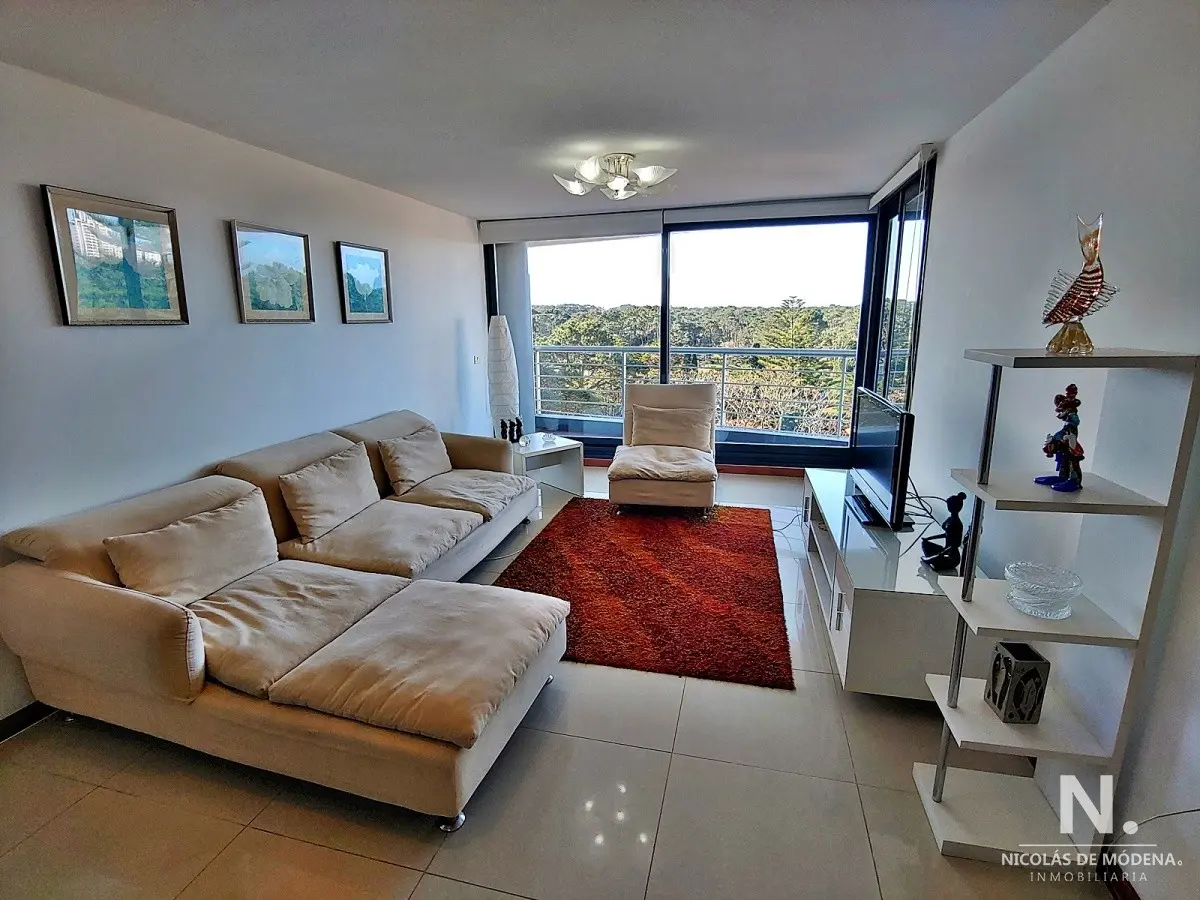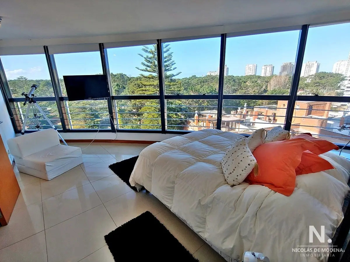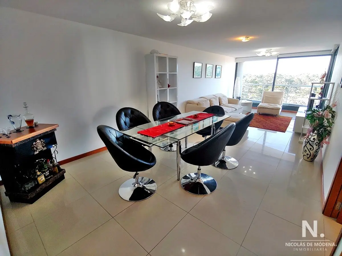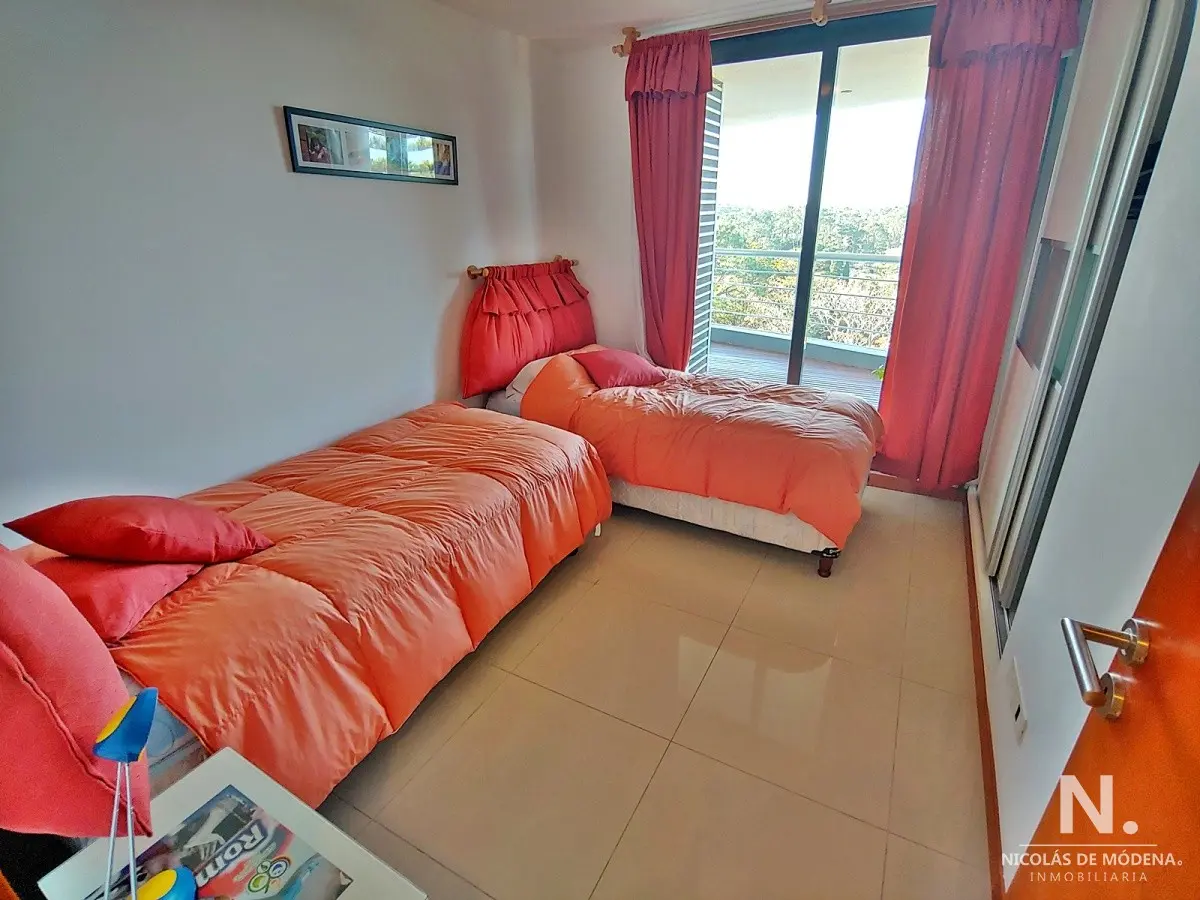 Tres dormitorios, el principal en suite, dos baños mas toilette, cocina definida con muy buen tamaño, amplio living comedor con terraza, vistas al bosque.
