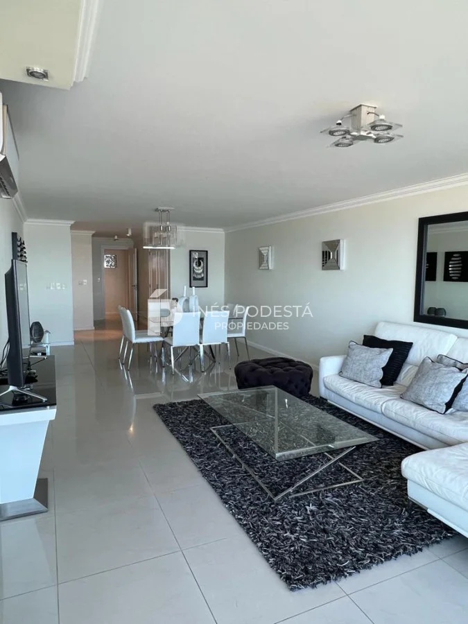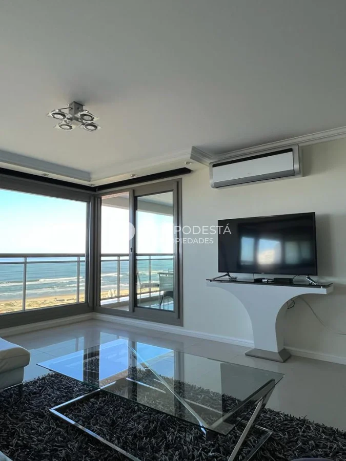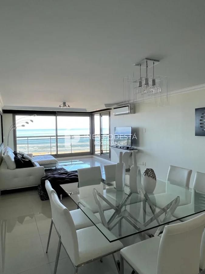 BRAVA. Excelente apartamento central al frente muy bien equipado y con increíble vista al mar de la brava y frente a los dedos. Living comedor luminoso con salida a terraza, 3 dormitorios en suite con AA y tv cable , dormitorio ppal con vestidor y jacuzzi en baño, cocina con terraza lavadero y comedor diario, toilette y garage.