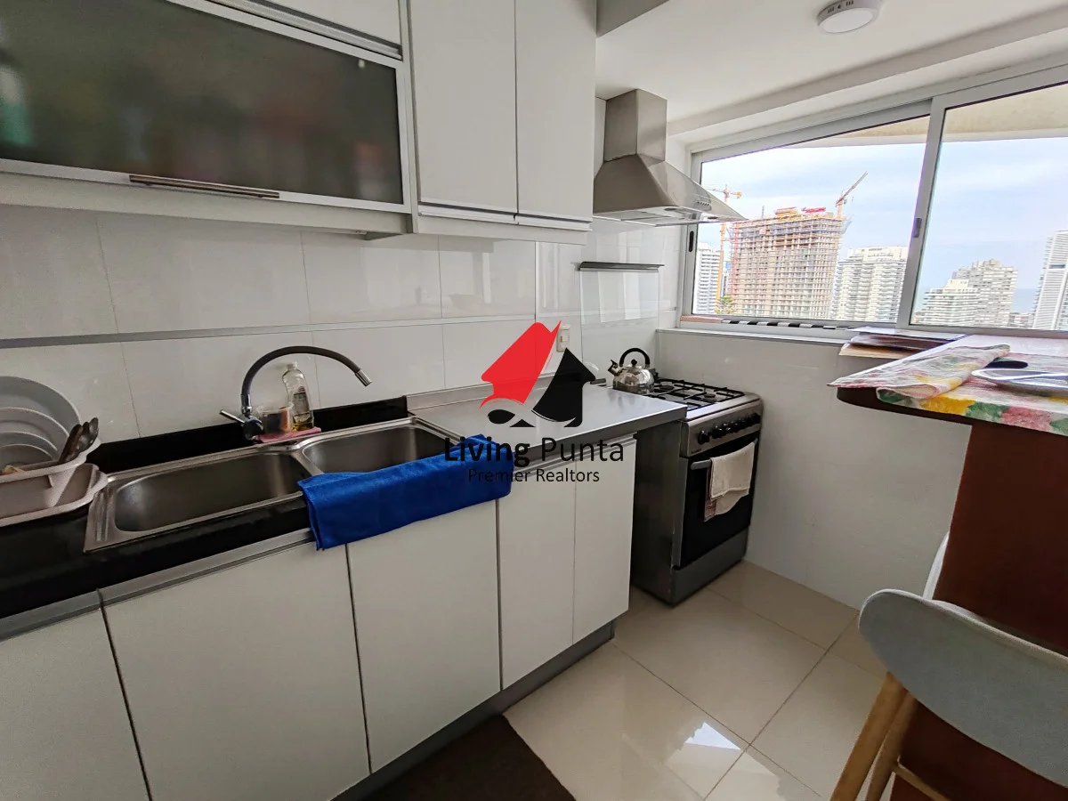La cocina, completamente equipada, se integra perfectamente al luminoso living-comedor, creando un ambiente acogedor y perfecto para compartir con familiares y amigos. Además, podrás disfrutar de los días soleados en la piscina del edificio, un espacio ideal para refrescarte y relajarte.