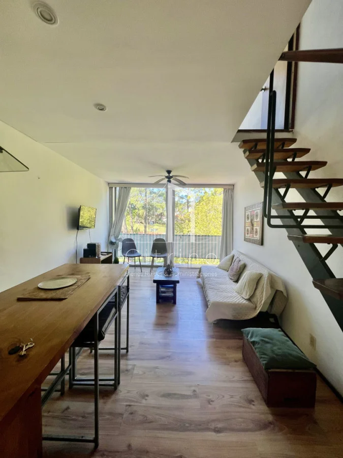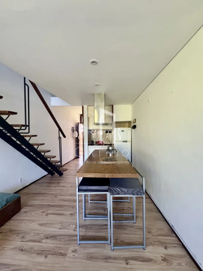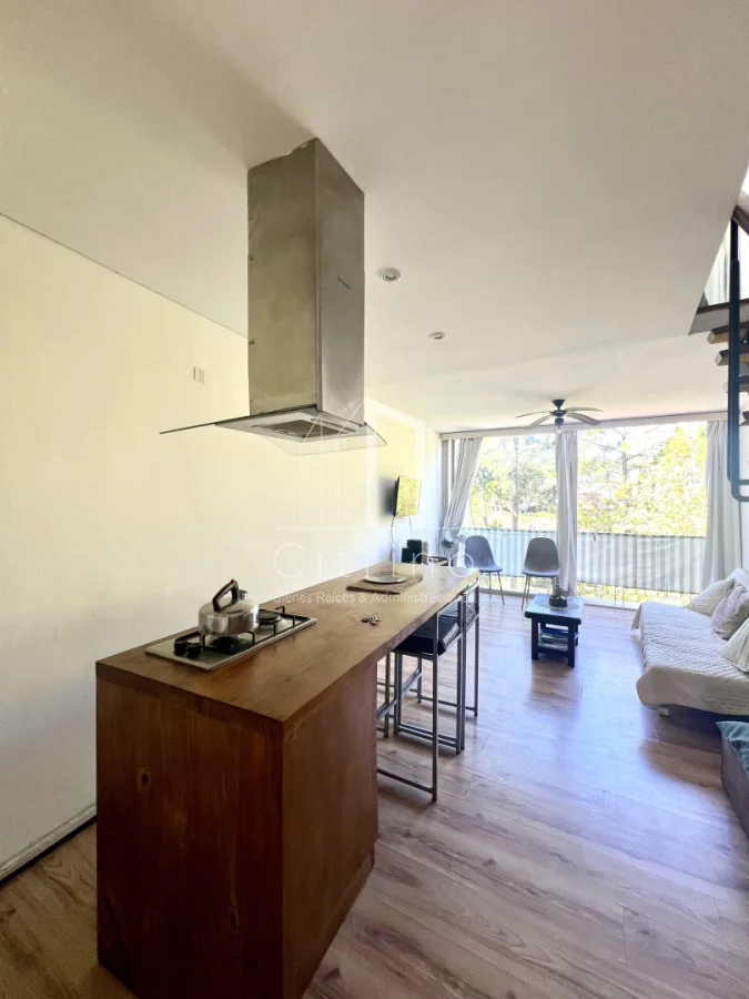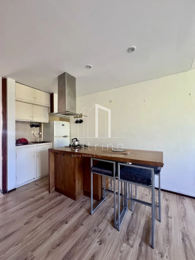 Este acogedor apartamento de un dormitorio y un baño es ideal para aquellos que buscan un espacio íntimo y confortable. La cocina integrada fluye sin esfuerzo hacia el living comedor, creando un ambiente abierto y luminoso.