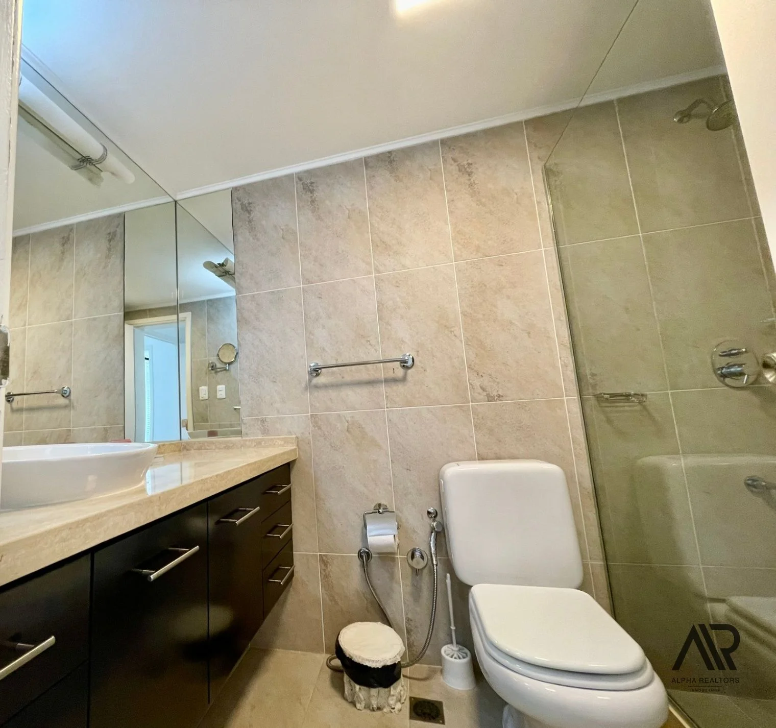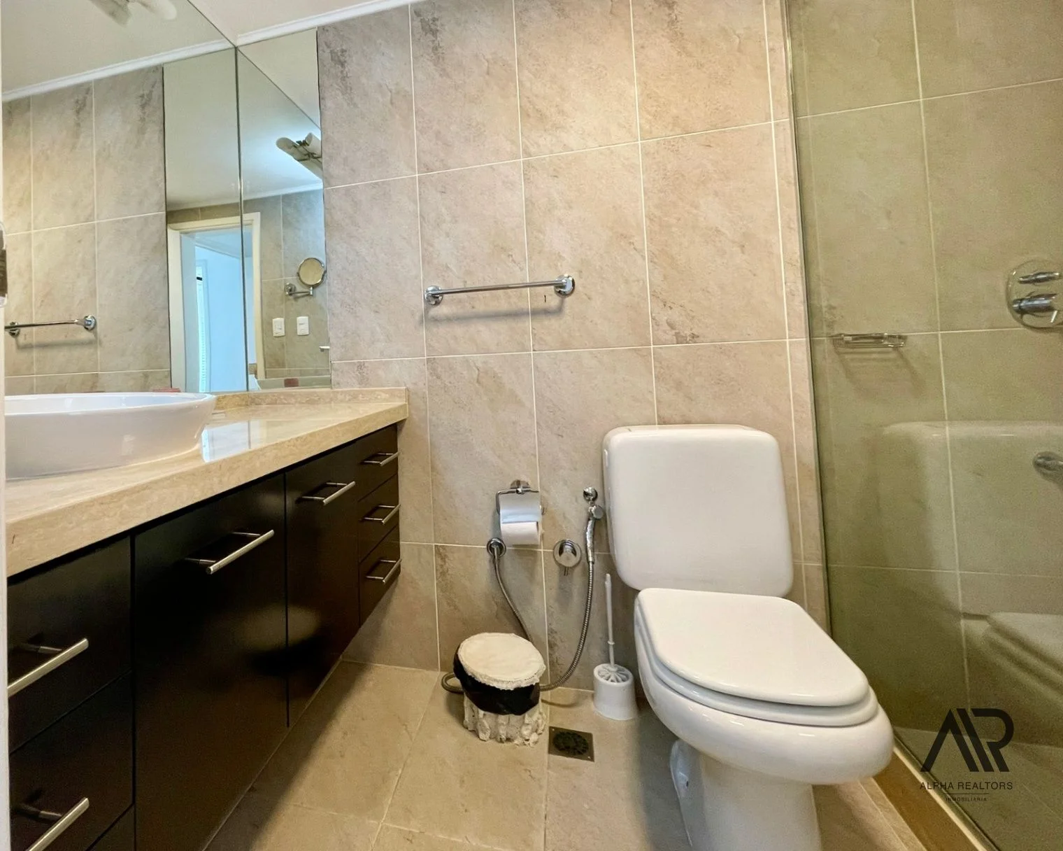 El apartamento cuenta con 3 dormitorios, incluyendo un dormitorio en suite, y 2 baños, ideal para familias o para recibir huéspedes. Su cocina equipada se integra con un espacioso living comedor, creando un ambiente perfecto para compartir momentos inolvidables. Entre las características adicionales, se incluyen aire acondicionado, WiFi, cable TV, y una dependencia de servicio. Los residentes disfrutarán de múltiples comodidades como piscina climatizada cerrada y abierta, gimnasio, canchas de tenis, fútbol y básquetbol, así como áreas de juegos infantiles y un salón de fiestas, todo dentro de un entorno seguro y familiar.