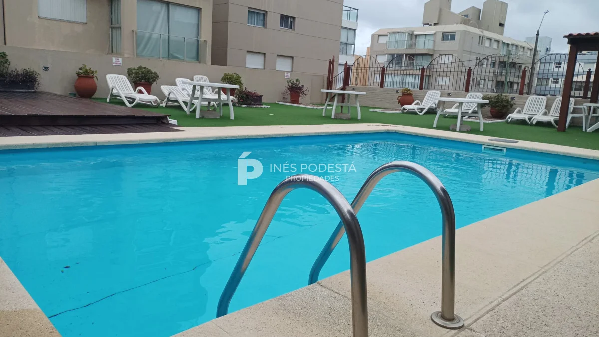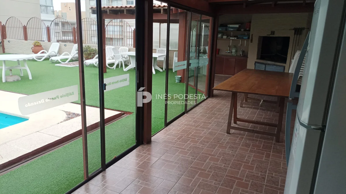 A PASOS DE PLAYA EL EMIR, balcón con vista al mar, living-comedor, 2 dormitorios, 2 baños, 1 suite, cocina, garage, portero, servicio de mucamas, piscina climatizada abierta y barbacoa. Referencia Interna : Tera-4105