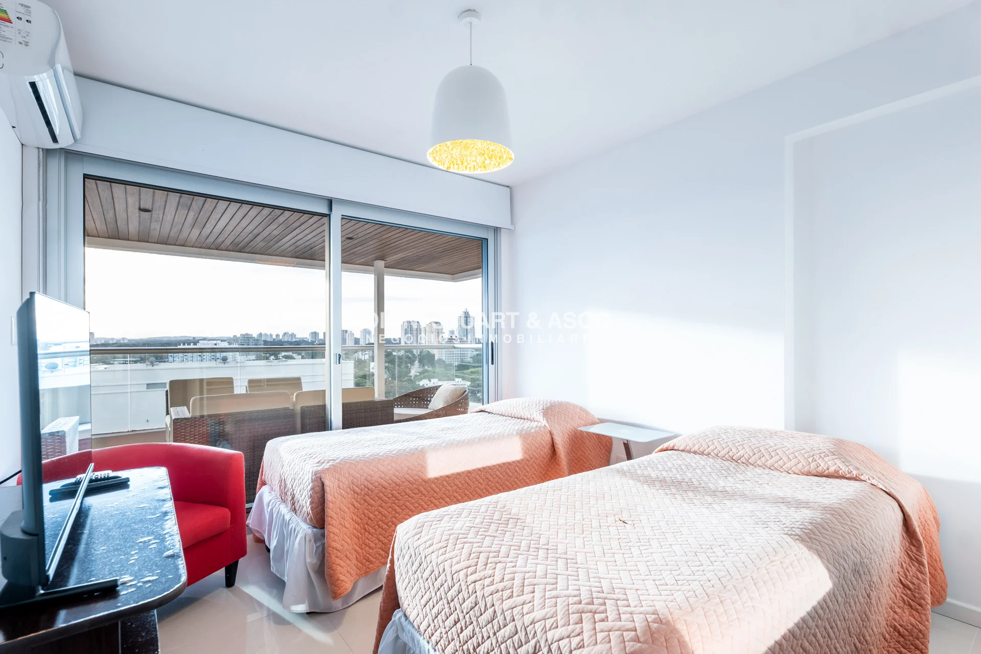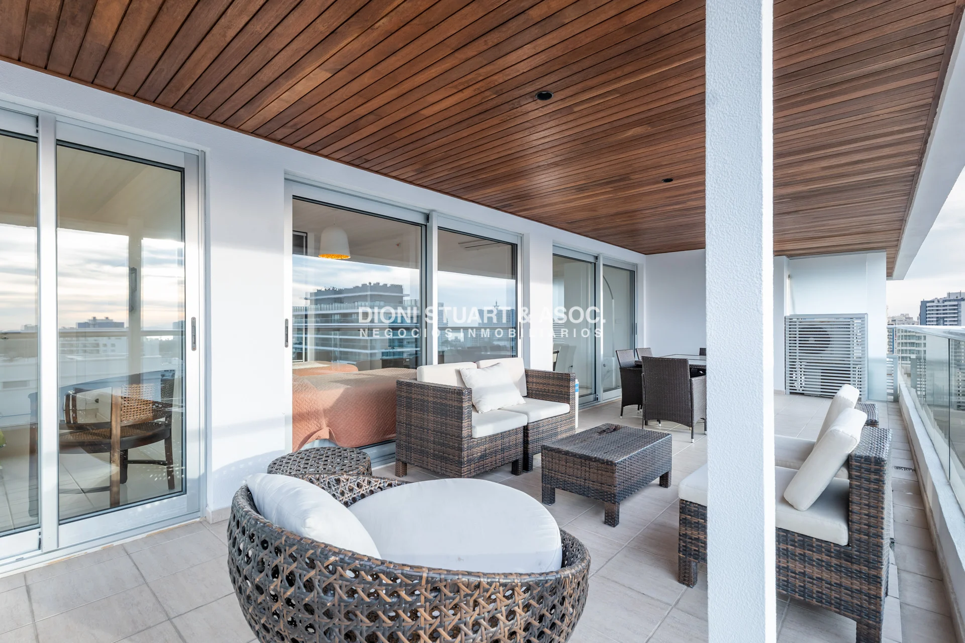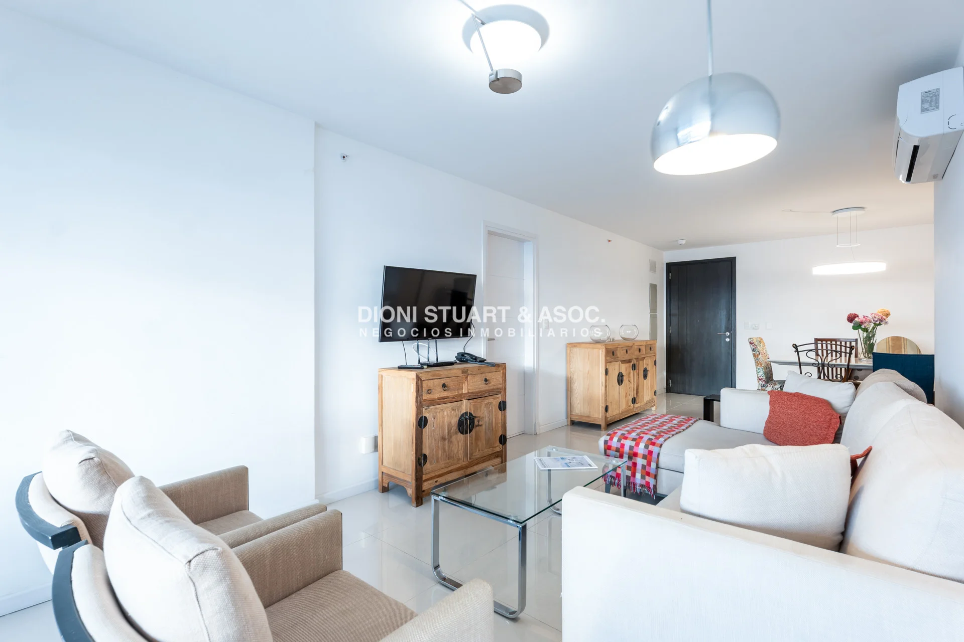 Apartamento de 107 m² totales en ICON BRAVA TOWER, muy luminoso y con excelente orientación noroeste. Dispone de 2 dormitorios, cocina definida, un amplio living-comedor y una terraza con excelentes vistas desde donde se puede ver la Isla Gorriti y el mar, orientada al NorOeste, ideal para aprovechar el sol durante gran parte del día. Ambientes cómodos, funcionales y bien distribuidos, ideales tanto para vivir todo el año como para disfrutar en temporada. Cuenta con garage.