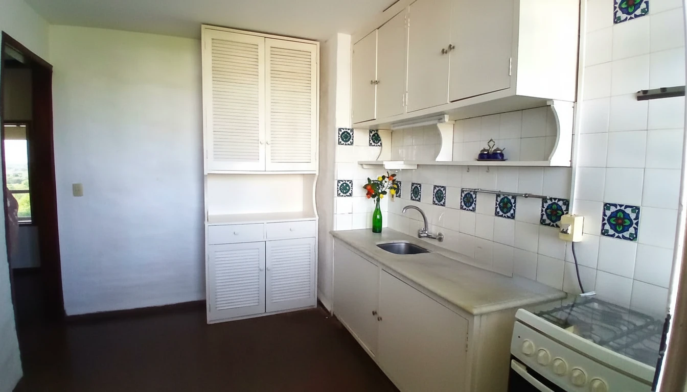 Descubra un encantador apartamento a la venta en el 'EDIFICIO LAS PALMERAS', ideal para quienes buscan un estilo de vida tranquilo en un entorno natural. Este inmueble ofrece un baño y tiene una antigüedad de más de 30 años, reflejando solidez y carácter. Con un precio de U$S 90.000, representa una excelente oportunidad para disfrutar de un hogar acogedor con generosas zonas verdes. El apartamento se caracteriza por un salón luminoso con chimenea y grandes ventanales, creando una atmósfera cálida y espaciosa. Los ambientes varían entre rústico-tradicional y clásico, combinando ladrillo, madera y pisos de monolitico para un disfrute familiar. La cocina integral es funcional y cuenta con amplios armarios y una encimera clara, perfecta para la vida diaria. Entre sus características clave, destacan las amplias zonas verdes, una zona infantil y un sendero de baldosas que invitan al ocio al aire libre. La ventilación natural, los muebles de madera y el mobiliario blanco tradicional complementan las paredes con textura, brindando un ambiente acogedor y lleno de encanto. Un espacio que invita a la conexión con la naturaleza y la tranquilidad.