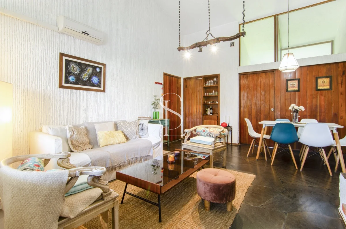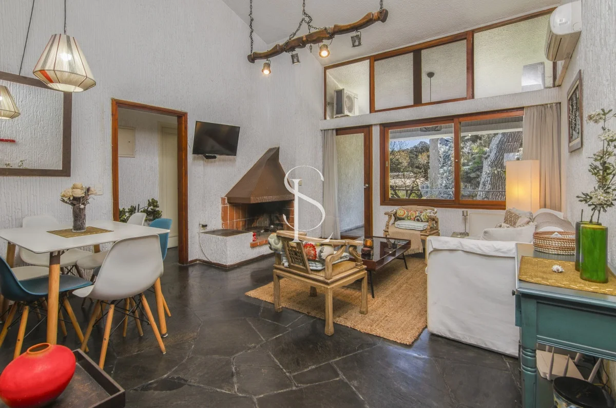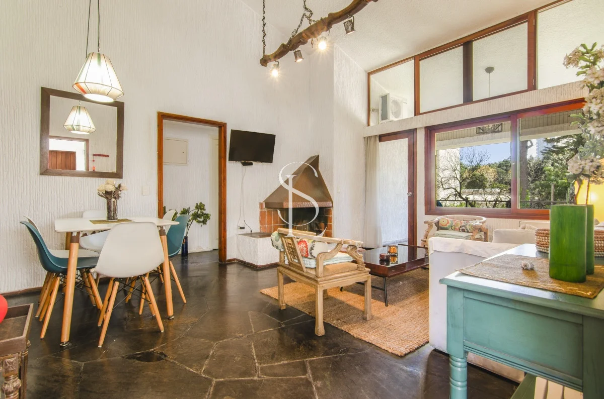 Este apto tipo casa cuenta con dos dormitorios mas altillo acondicionado con camas , dos baños , cocina definida , living comedor con estufa a leña y parrillero propio.