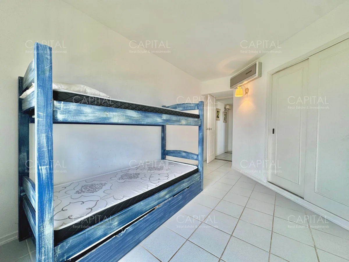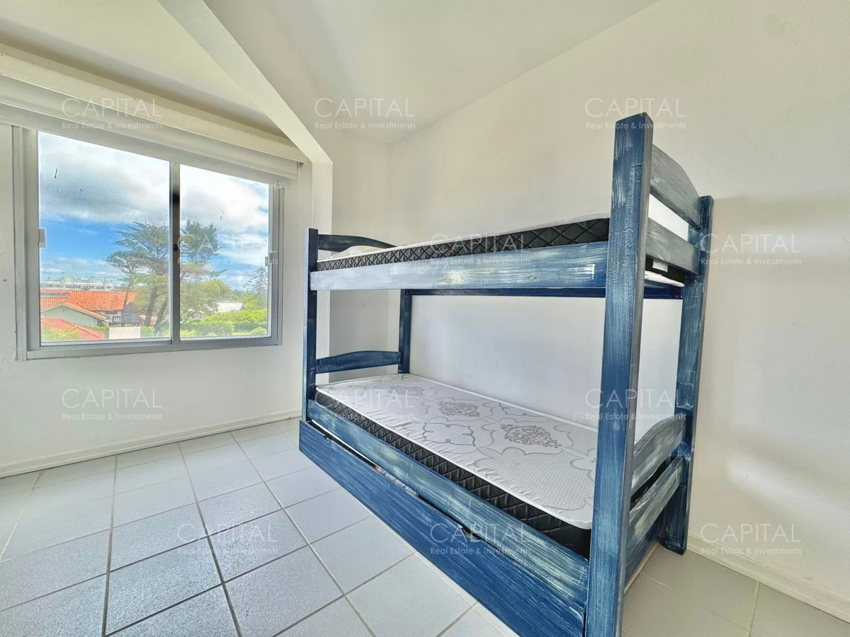 La unidad cuenta con tres dormitorios, siendo el principal en suite y los otros dos en semi-suite + toilette.
