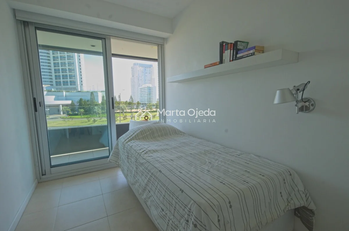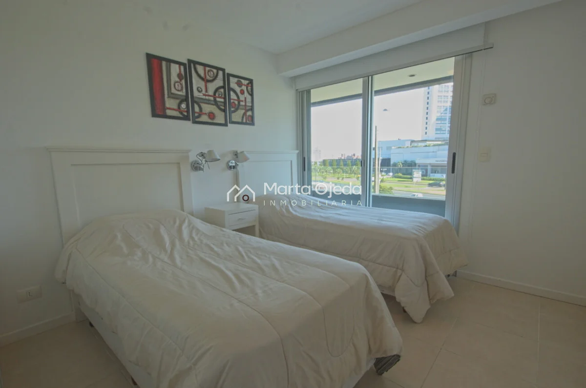 Excelente apartamento a una cuadra de Playa Mansa. Edificio con muy buenos servicios y cerca de la península Comodidades: - Living - comedor - Terraza - Cocina con lavadero - 3 dormitorios (una suite) - 2 baños - Garaje Amenities : Recepción - Piscina Climatizada - Piscina abierta - Microcine - Gimnasio - Playroom - Ser. Mucama - Serv. Playa - Parrilleros techados - Spa Referencia Interna : Tera-40664