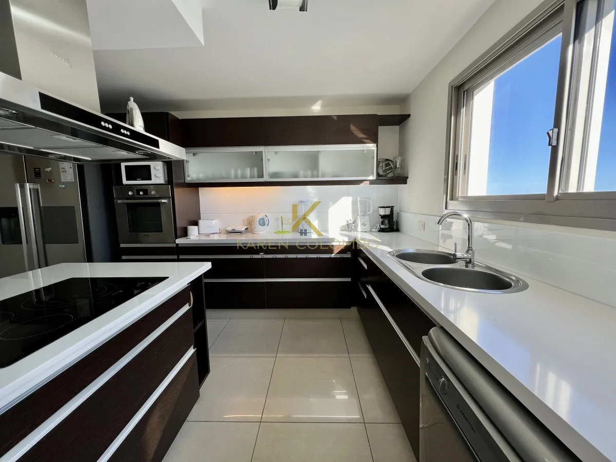3 dormitorios en suite, dependencia de servicio con baño, toilette, amplio living comedor con salida a una espectacular y amplia terraza con vista al mar, cocina definida, lavadero.