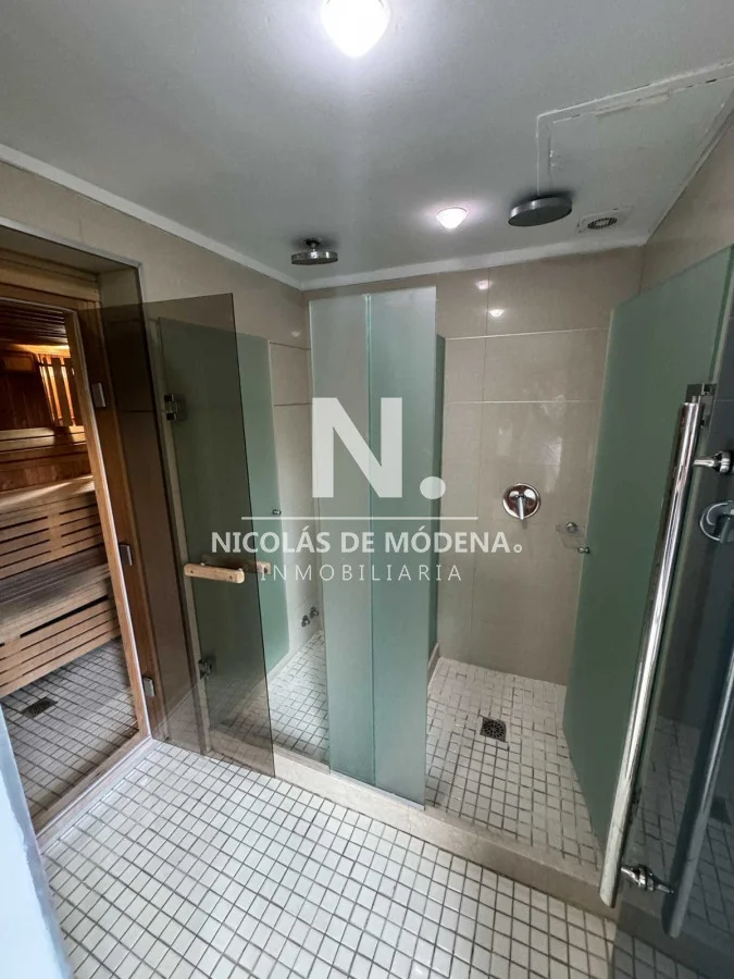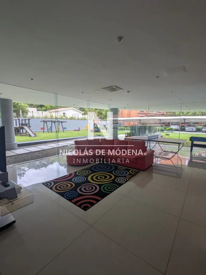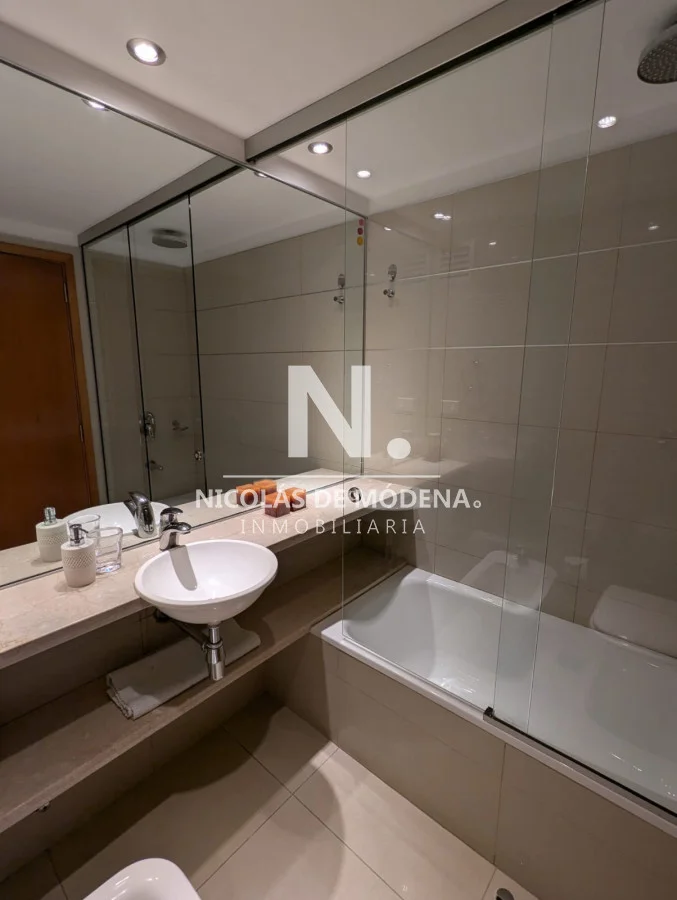 El edificio ofrece servicio de mucama diario, wifi, agua incluida, y una completa gama de amenities: gimnasio, piscina, jacuzzi, sauna, espacio de co-work, sala de niños, jardín con juegos infantiles y barbacoa de uso común.