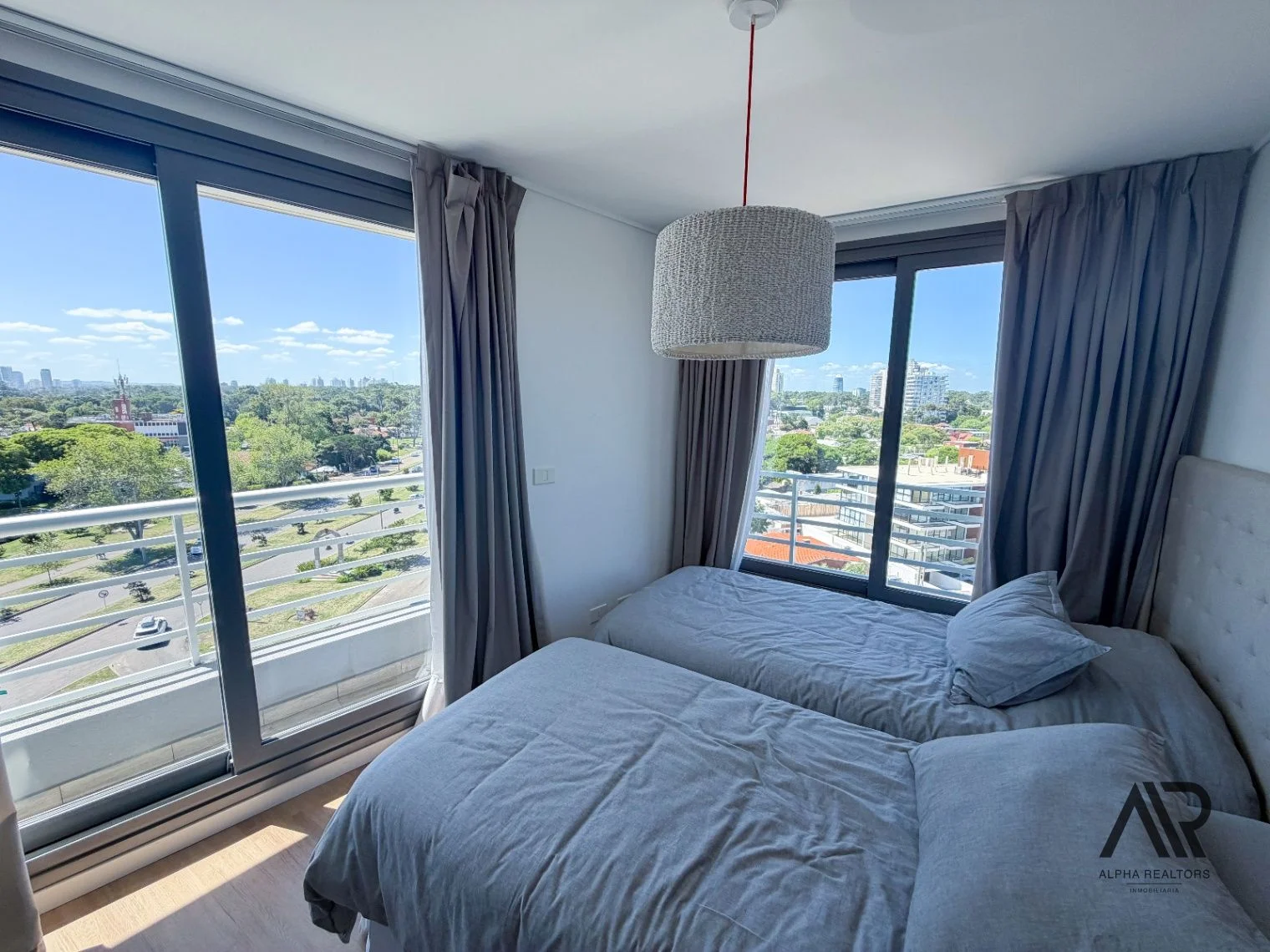Con una superficie total de 97 m², de los cuales 78 m² son cubiertos, el apartamento está orientado al norte, lo que maximiza la entrada de luz solar. Incluye características adicionales como internet, aire acondicionado, alarma, áreas verdes, cancha polideportiva, salón de fiestas, y mucho más, convirtiéndolo en una excelente opción de alquiler que combina ubicación, servicios y confort.