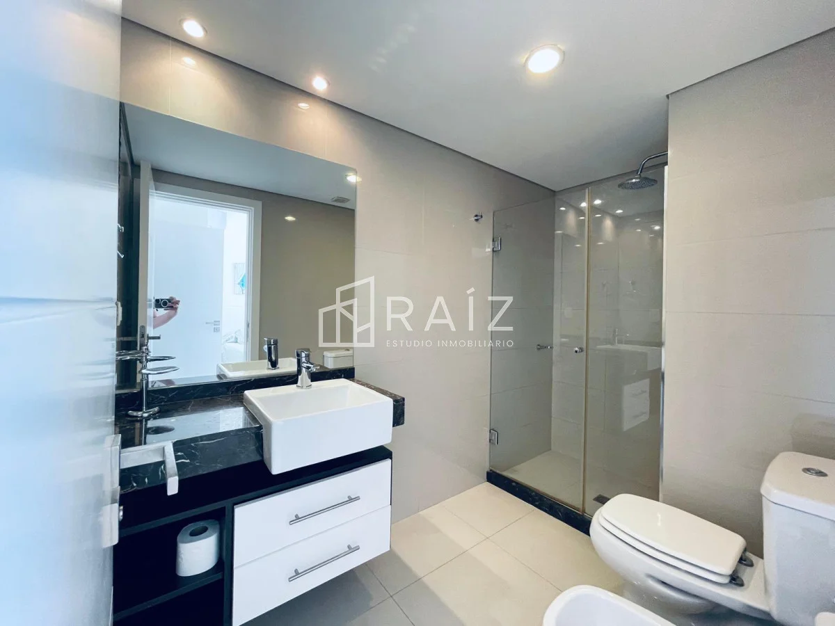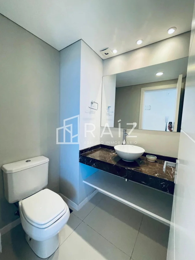 Este lujoso apartamento de 100 m2, tanto de superficie propia como total, cuenta con 2 dormitorios y 3 baños, de los cuales 2 son suites, ofreciendo un espacio privado y sofisticado para cada miembro de la familia. La cocina, bien equipada, es perfecta para los amantes de la gastronomía, mientras que el amplio living comedor invita a compartir momentos inolvidables con amigos y seres queridos.