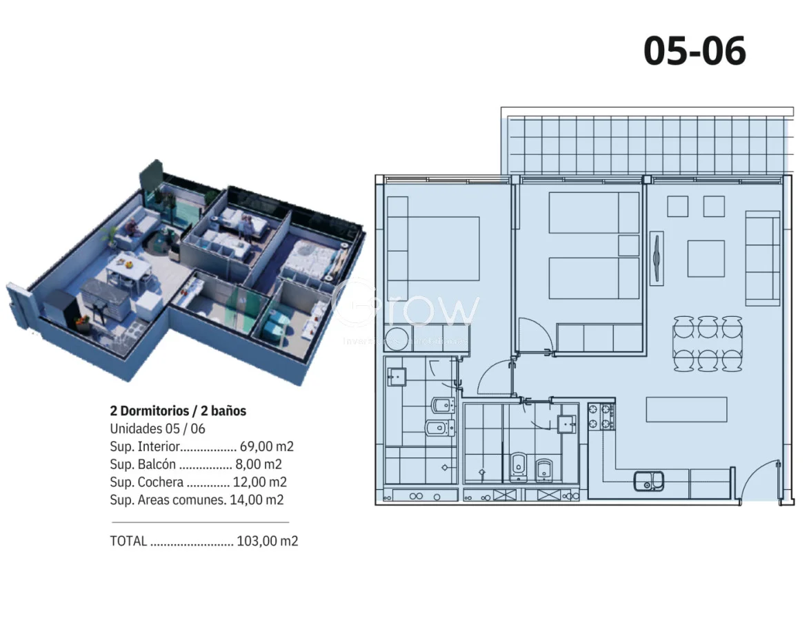 Hermoso apartamento a estrenar, cuenta con 2 dormitorios, 2 baños, living comedor con cocina integrada y terraza.