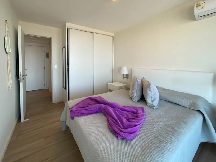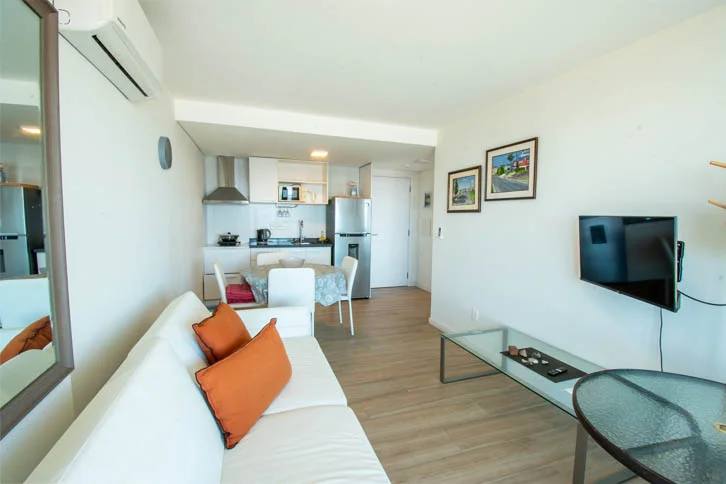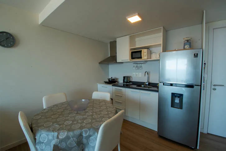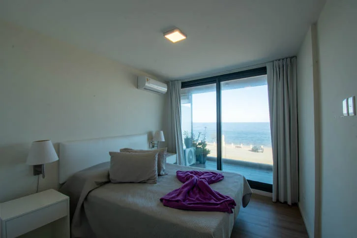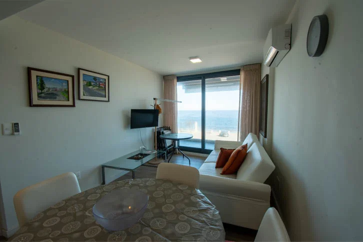 APARTAMENTO BEAULIEU MALDONADO SUNSET 202 AP502411 Disfrutá la experiencia de vivir todo el año en este confortable apartamento frente al mar, ideal para quienes buscan comodidad y relax. Este luminoso espacio cuenta con un living-comedor con cocina integrada, un dormitorio acogedor y un baño completo. Además, tendrás la conveniencia de una cochera propia. El edificio ofrece amenities pensados para tu bienestar: una barbacoa de uso común para tus reuniones y dos jacuzzis para relajarte, uno cerrado en planta baja y otro espectacular en la azotea, con vistas privilegiadas.