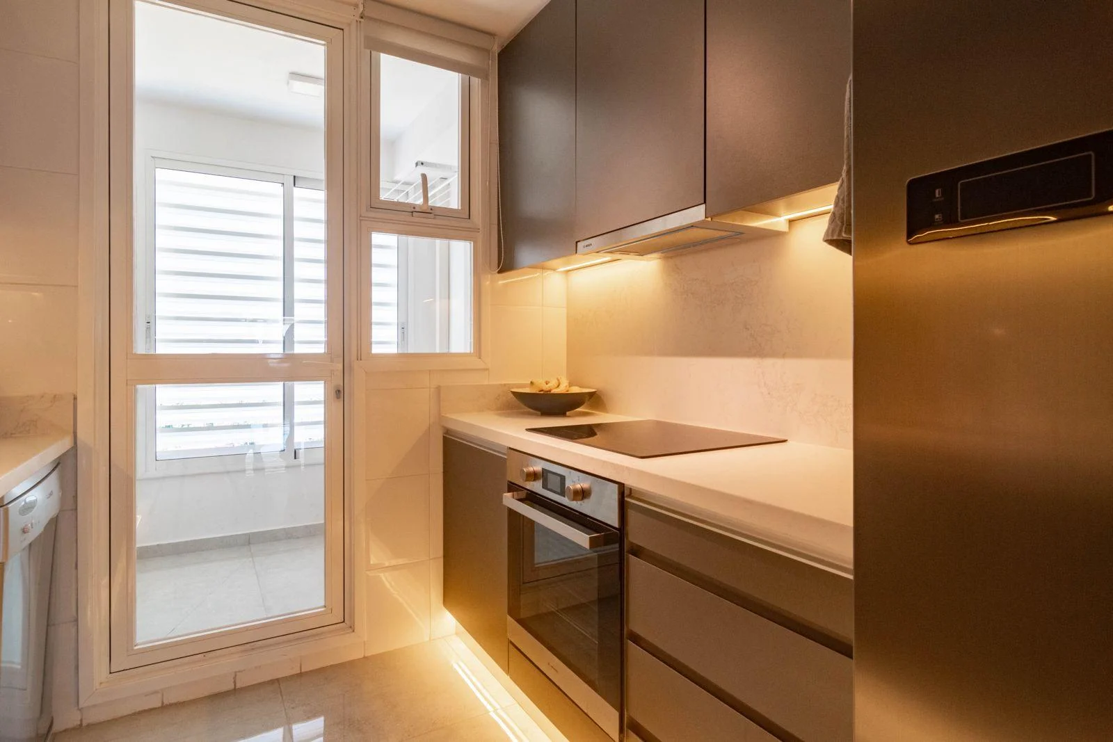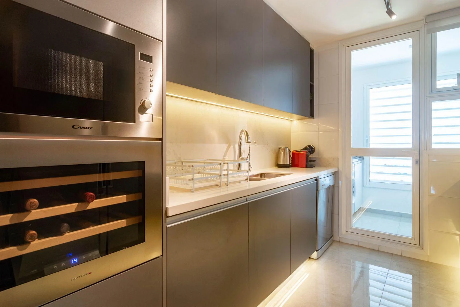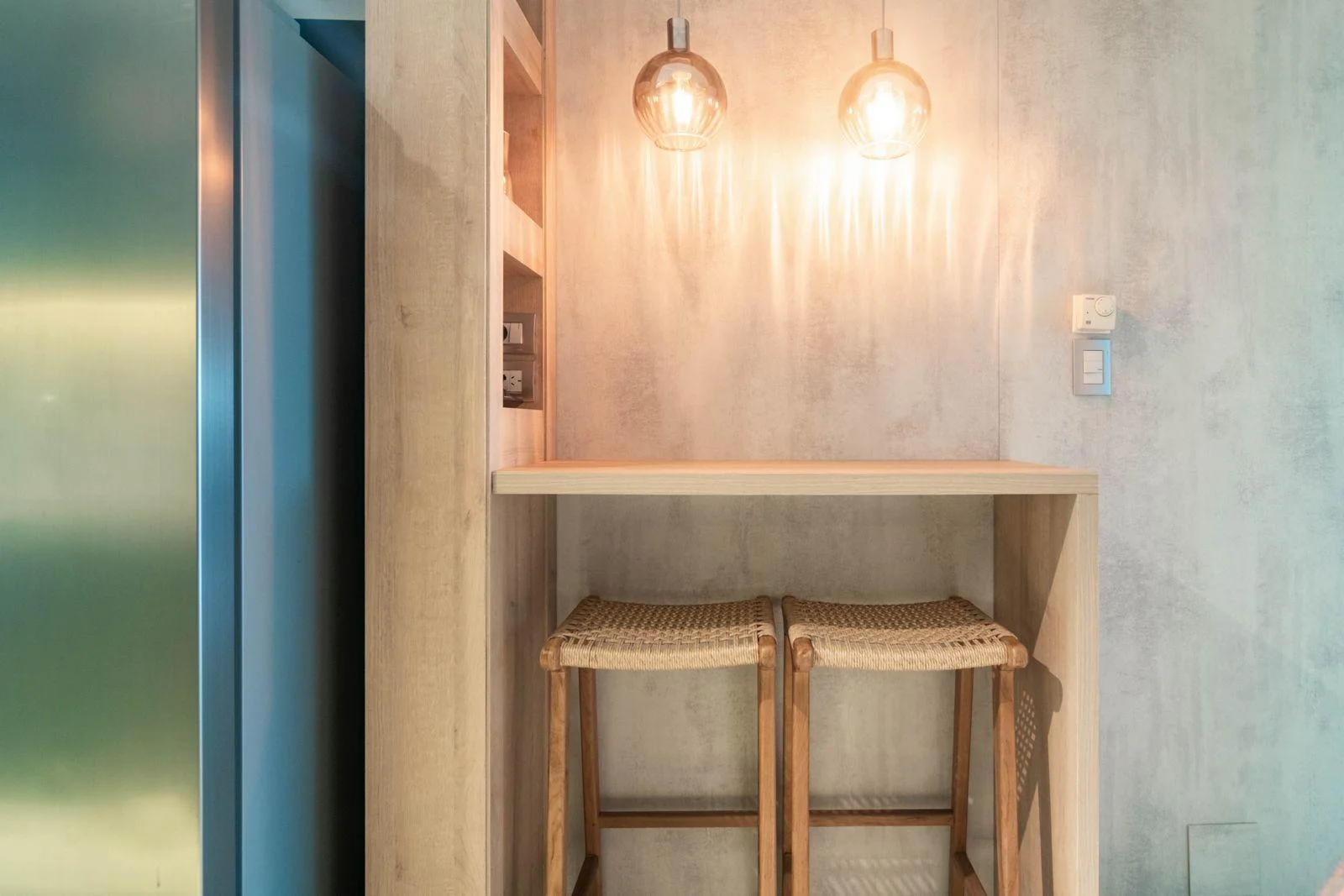 La cocina está equipada con desayunador diario y lavadero. La unidad también cuenta con baño social y acceso por palier semi-privado, brindando mayor comodidad y privacidad.