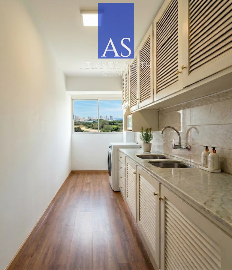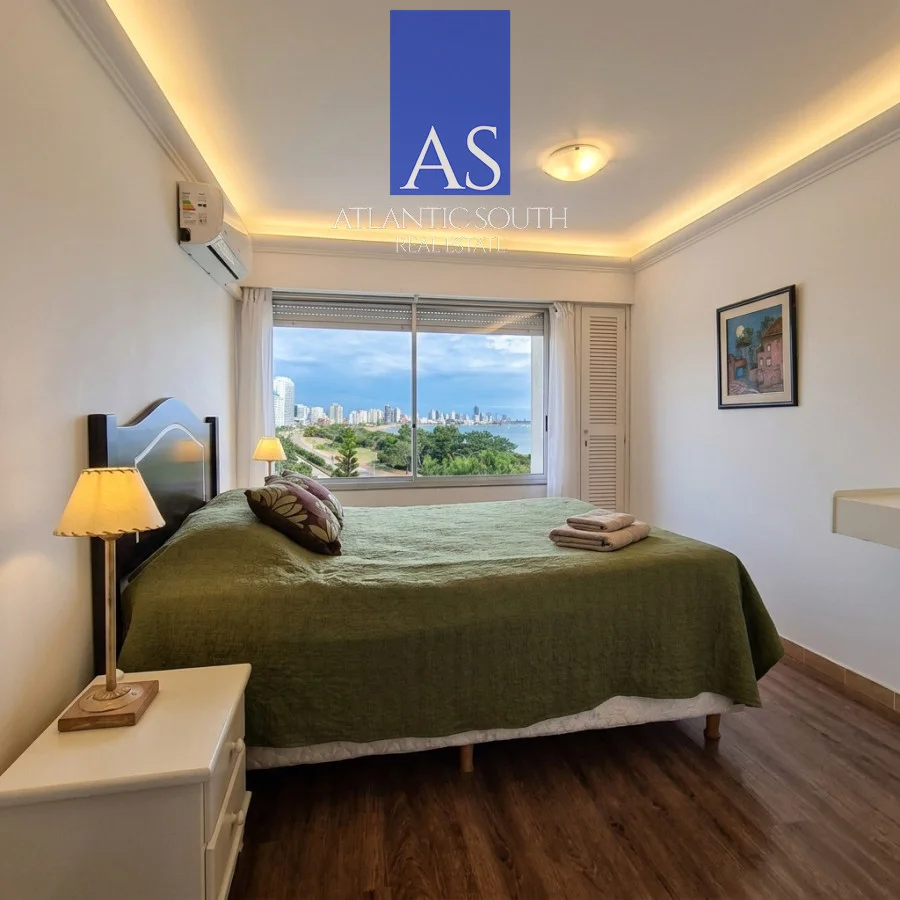La unidad se desarrolla en un amplio living-comedor con una vista impactante hacia la Península y toda la bahía de Playa Mansa, garantizando atardeceres únicos durante todo el año. Su orientación y altura generan una sensación de vista al mar infinita, con una conexión directa y permanente con el entorno natural.