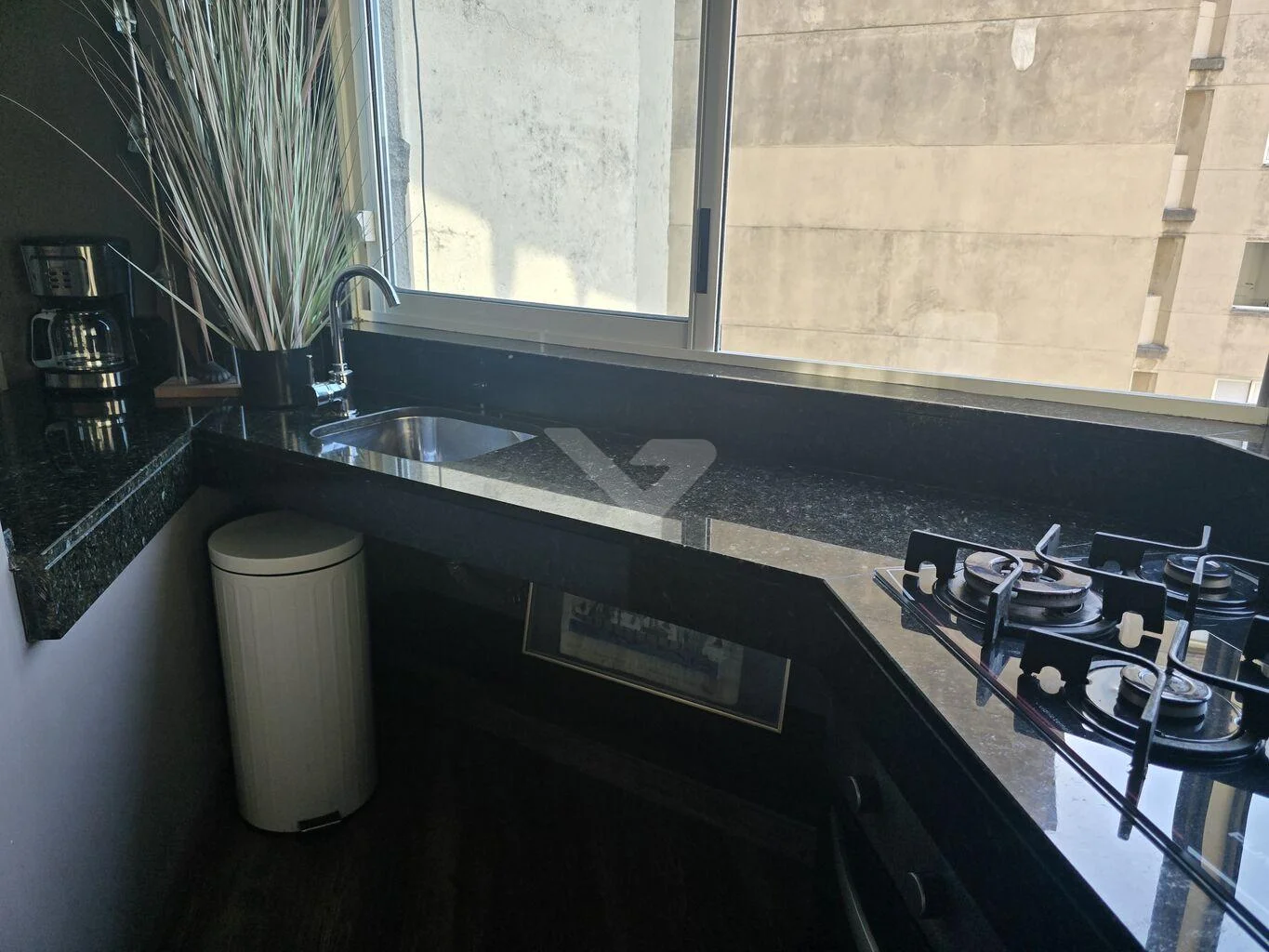 Cocina completa con comedor diario, dormitorio y baño de servicio completo hoy integrado a la cocina funcionando cómo escritorio para Home office.