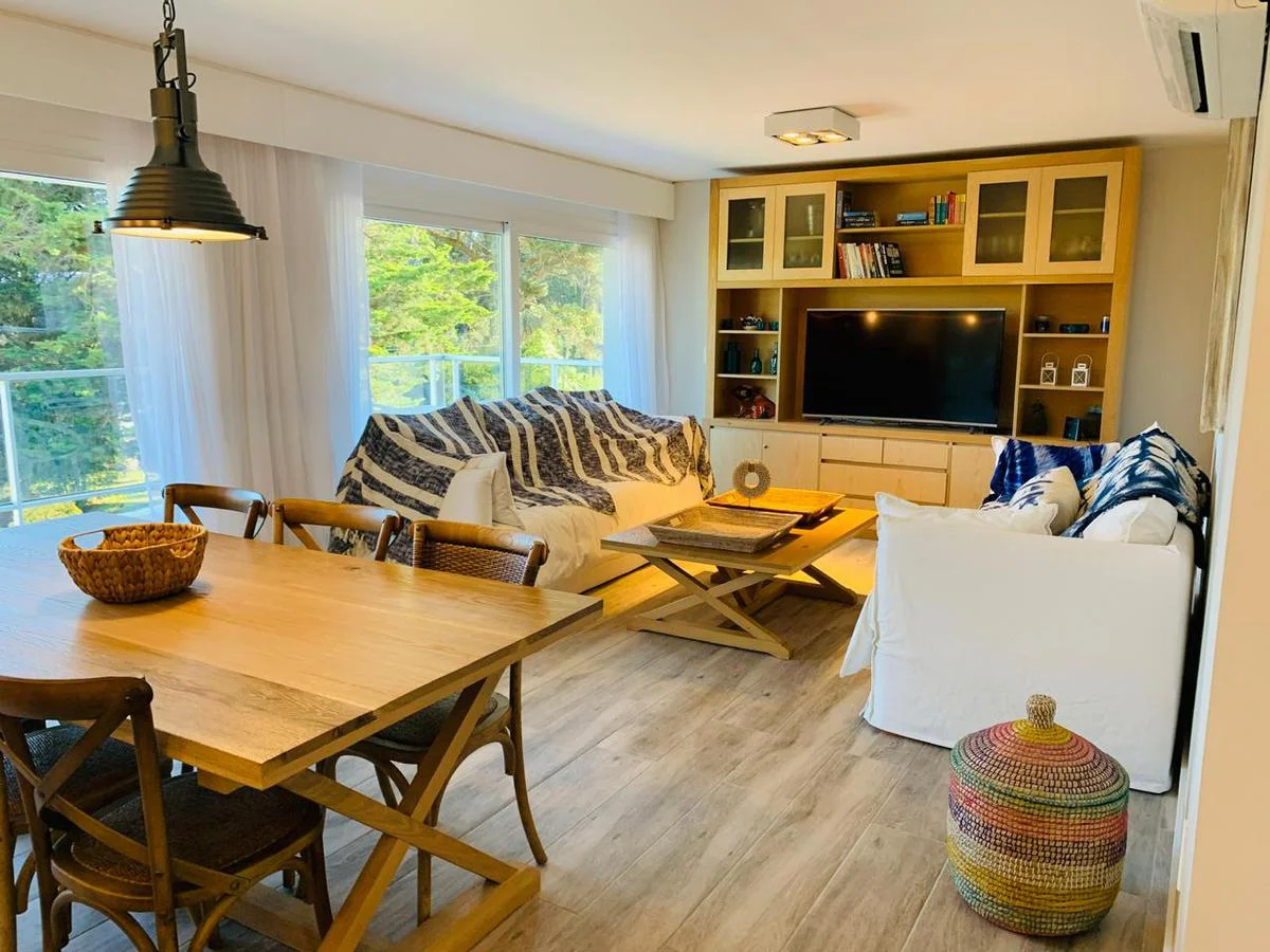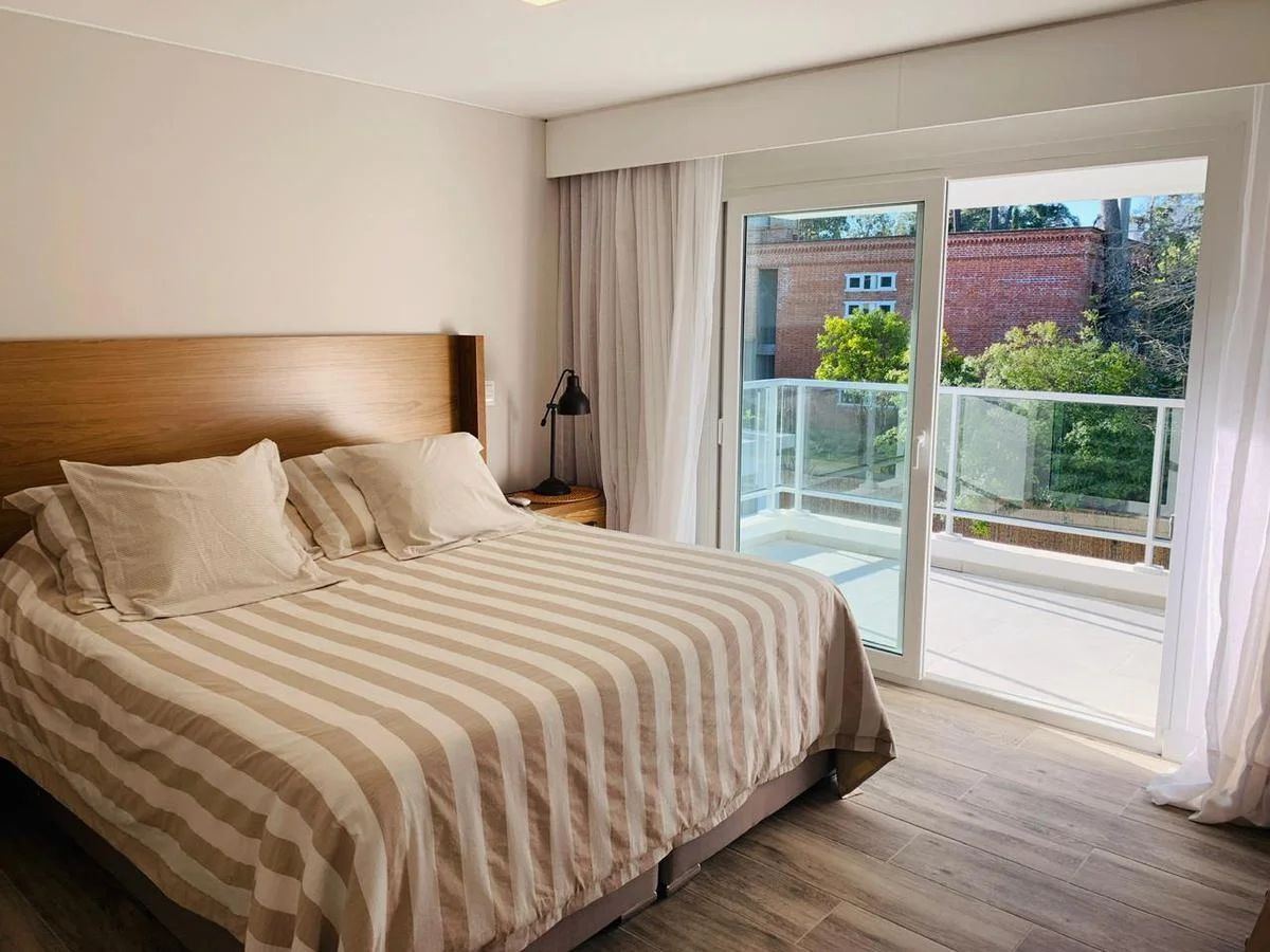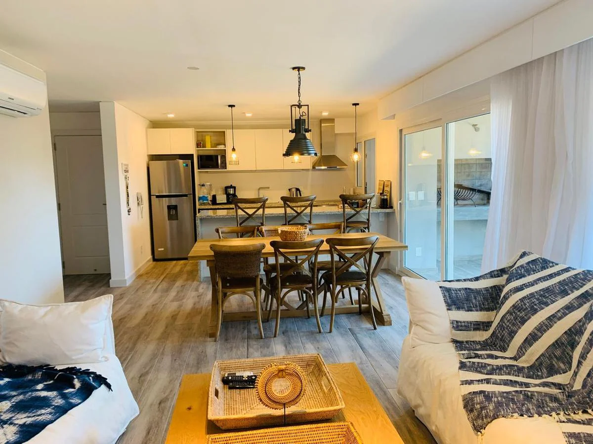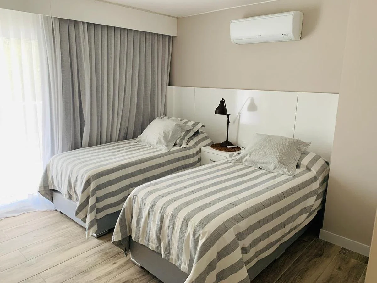 Cuenta con: Doble terraza una con parrillero, amplio living comedor con cocina integrada, toilette, 2 dormitorios en suite, 2 baños completos, garage. Aire acondicionado en todos los ambientes. Tv cable, wifi, ropa blanca.