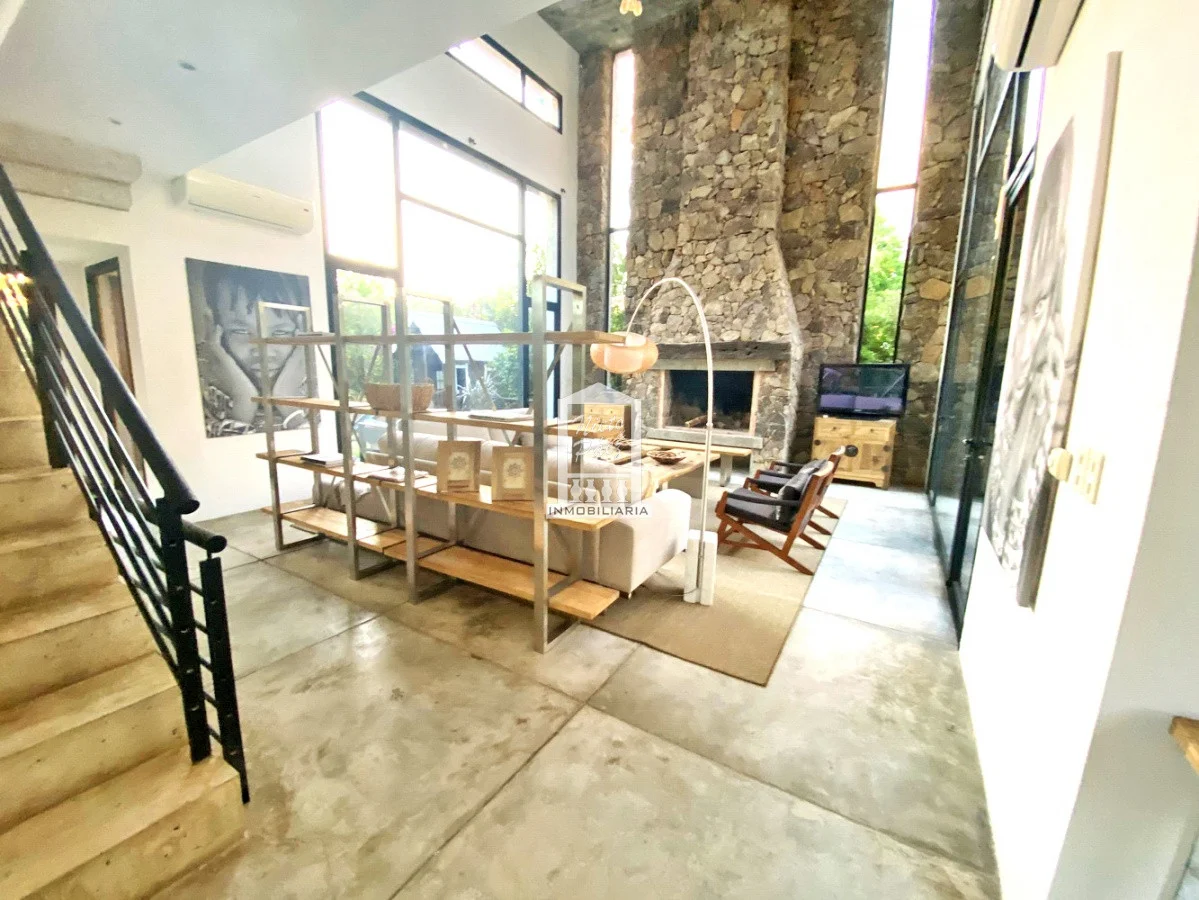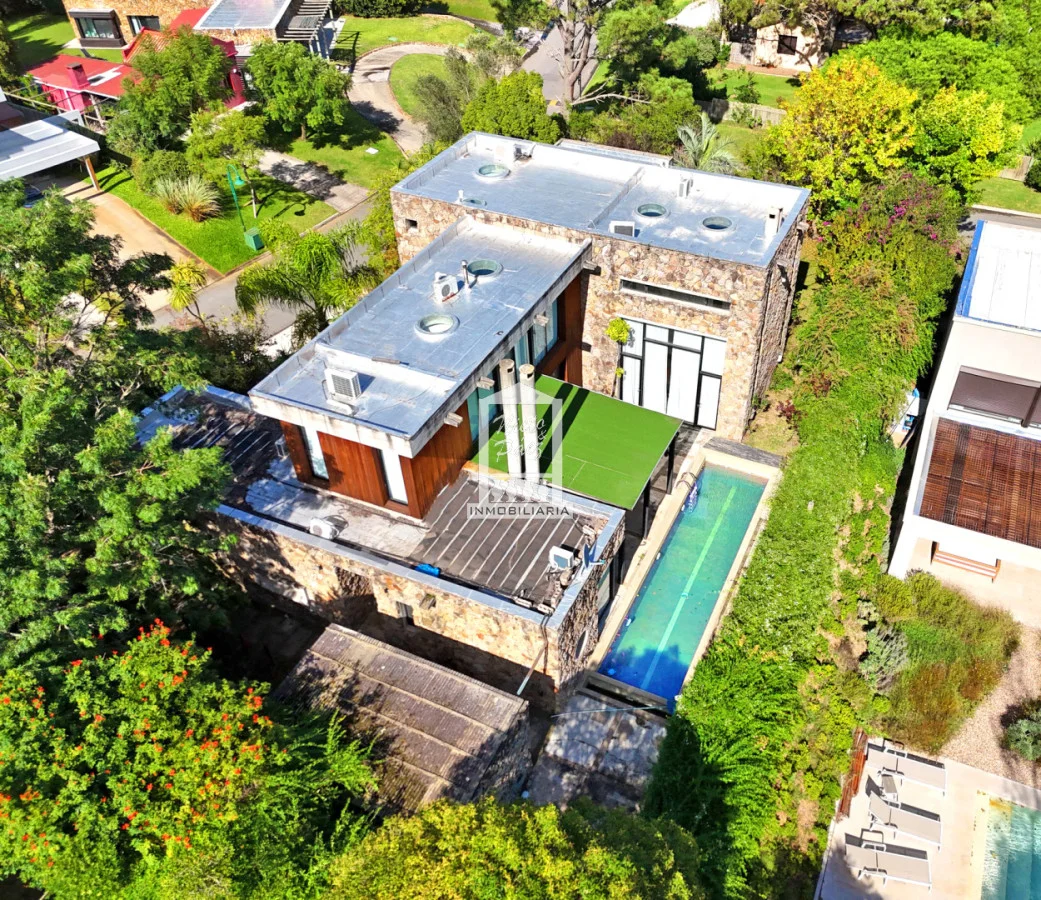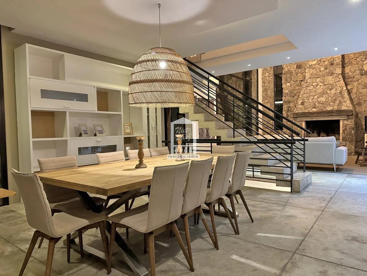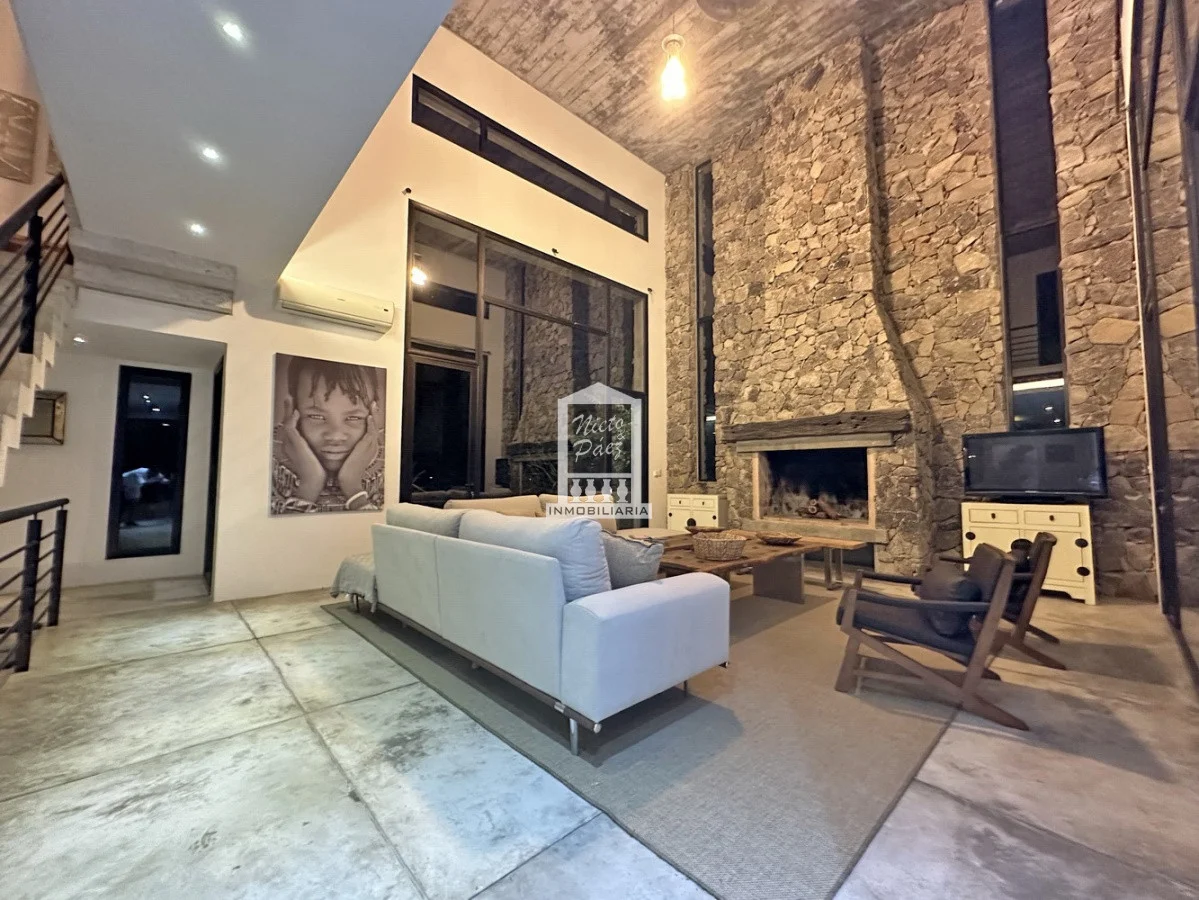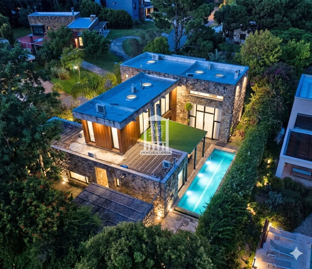 Esta espectacular casa de diseño, pronta para entrar, combina materiales nobles como piedra y madera de lapacho con una arquitectura moderna pensada para vivirla todo el año. El área social se destaca por un imponente living en doble altura, generando una gran sensación de amplitud y jerarquía, en conexión directa con el exterior.