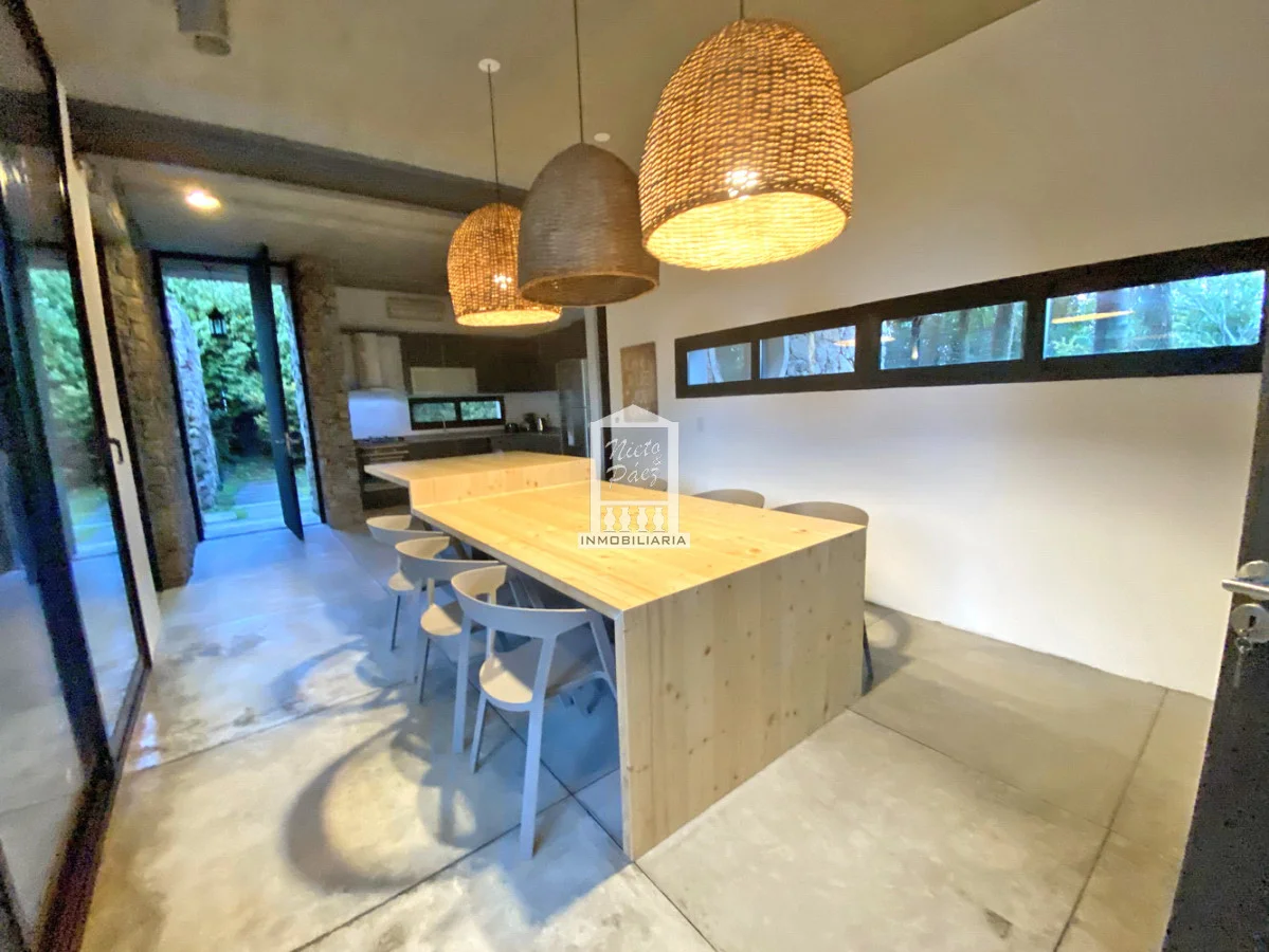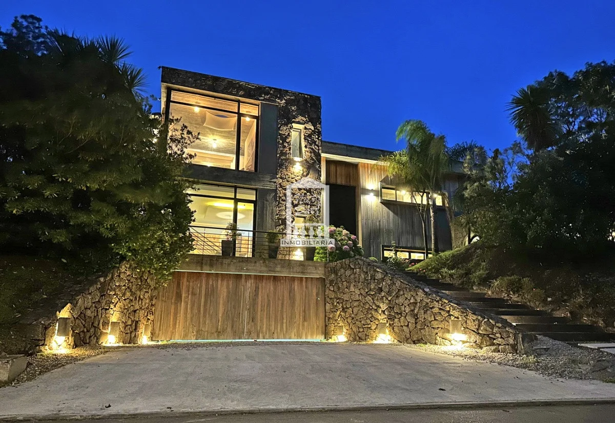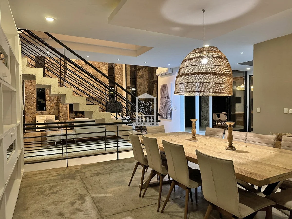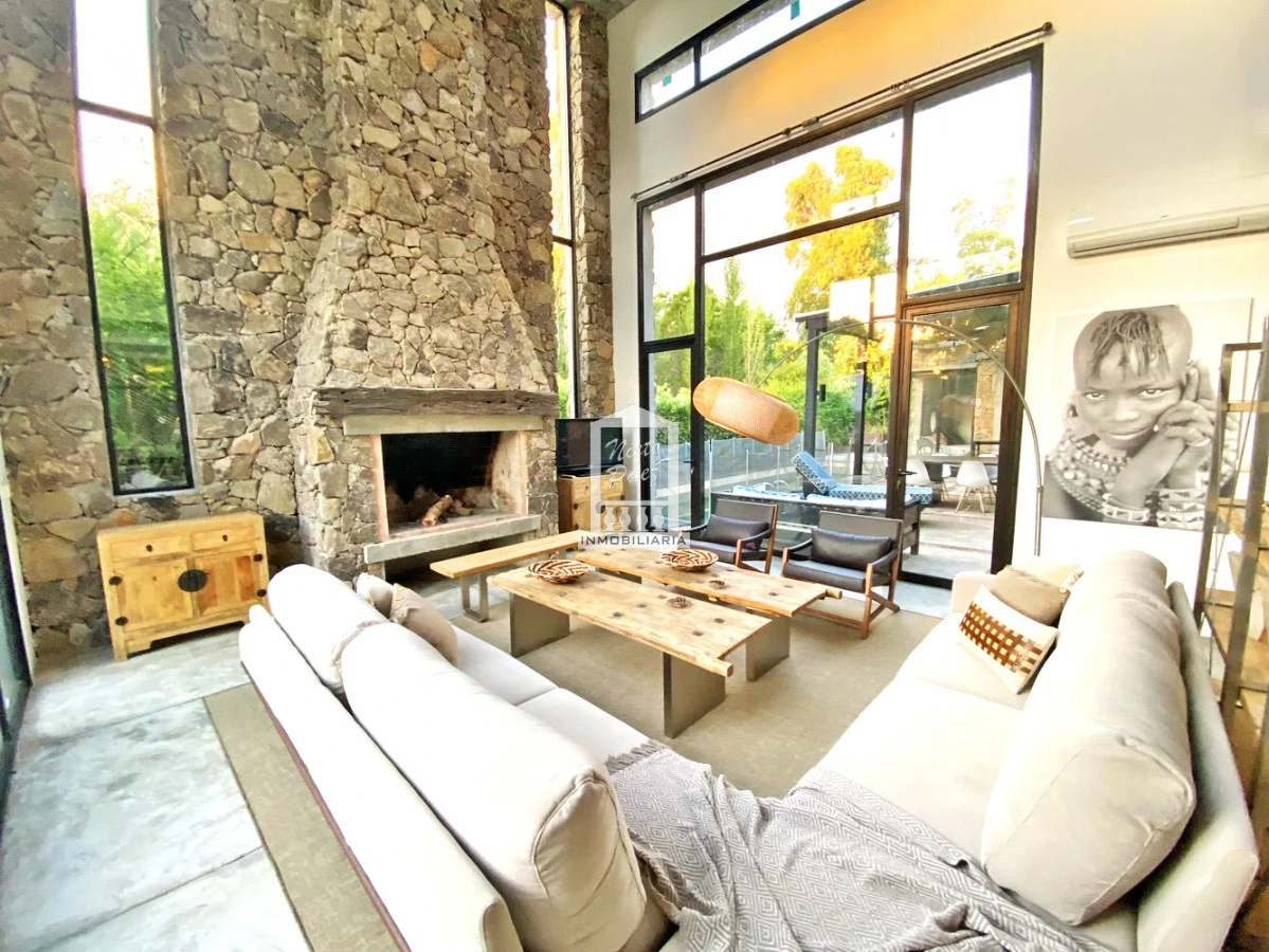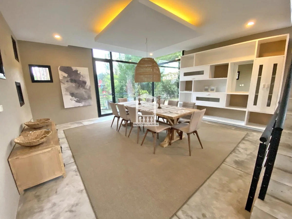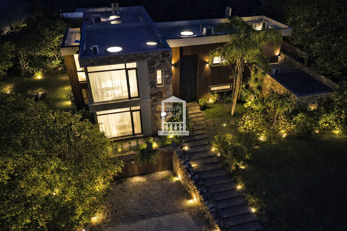 Esta espectacular casa de diseño, pronta para entrar, combina materiales nobles como piedra y madera de lapacho con una arquitectura moderna pensada para vivirla todo el año. El área social se destaca por un imponente living en doble altura, generando una gran sensación de amplitud y jerarquía, en conexión directa con el exterior.