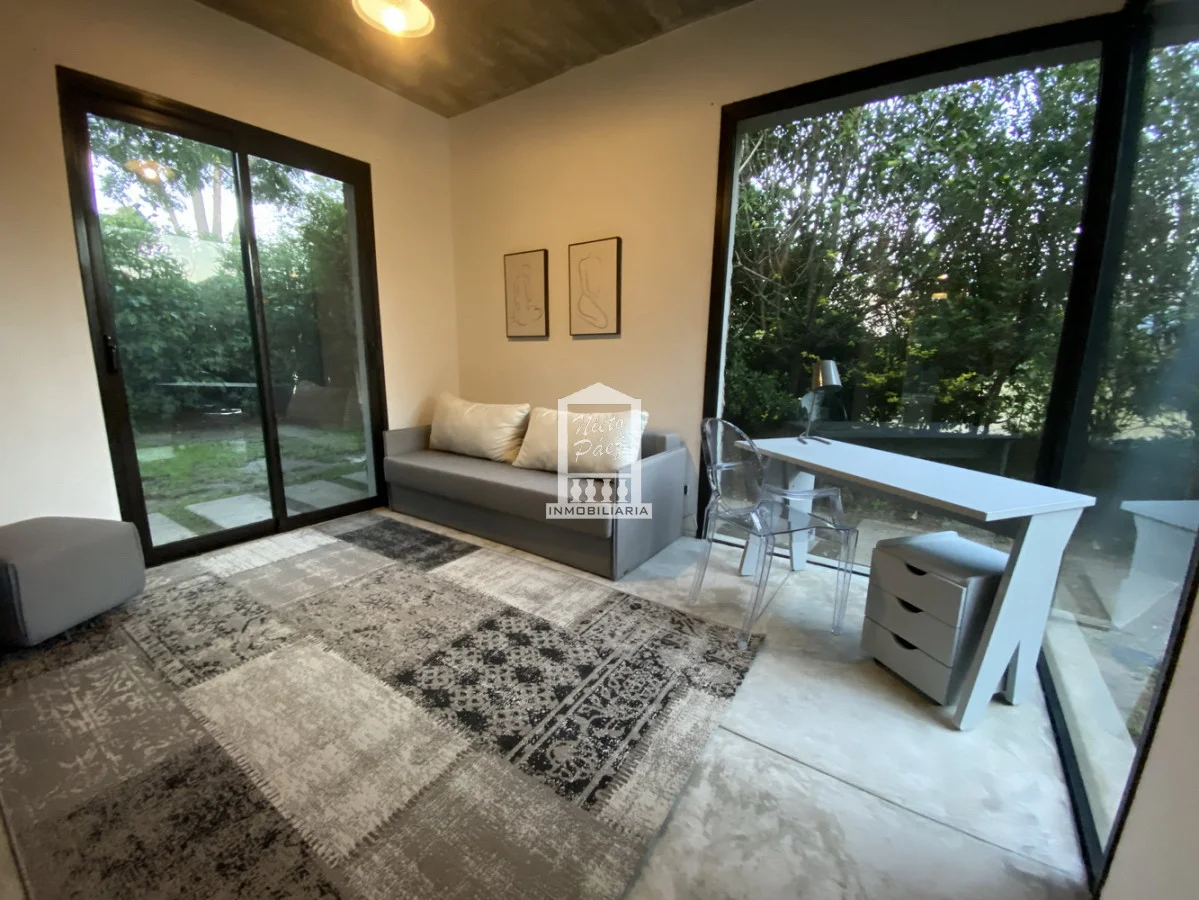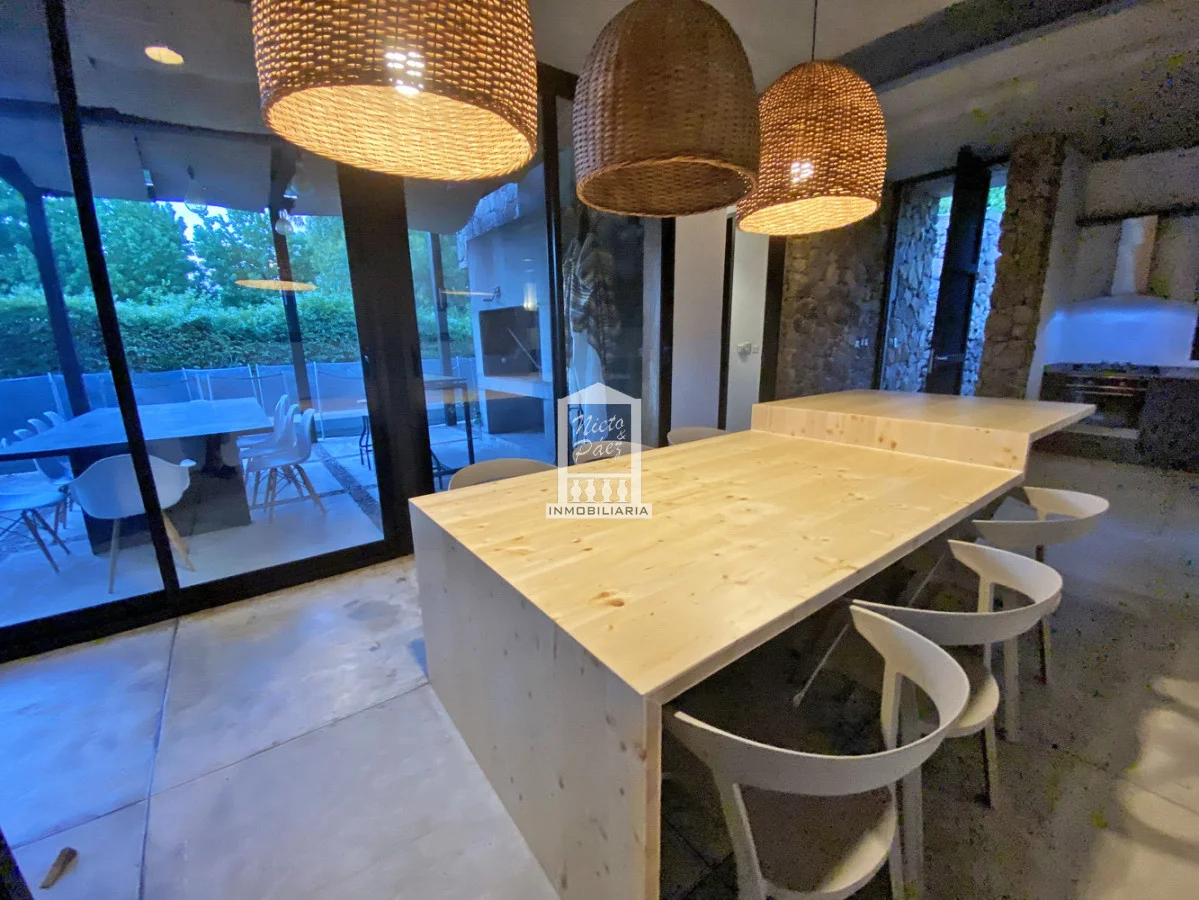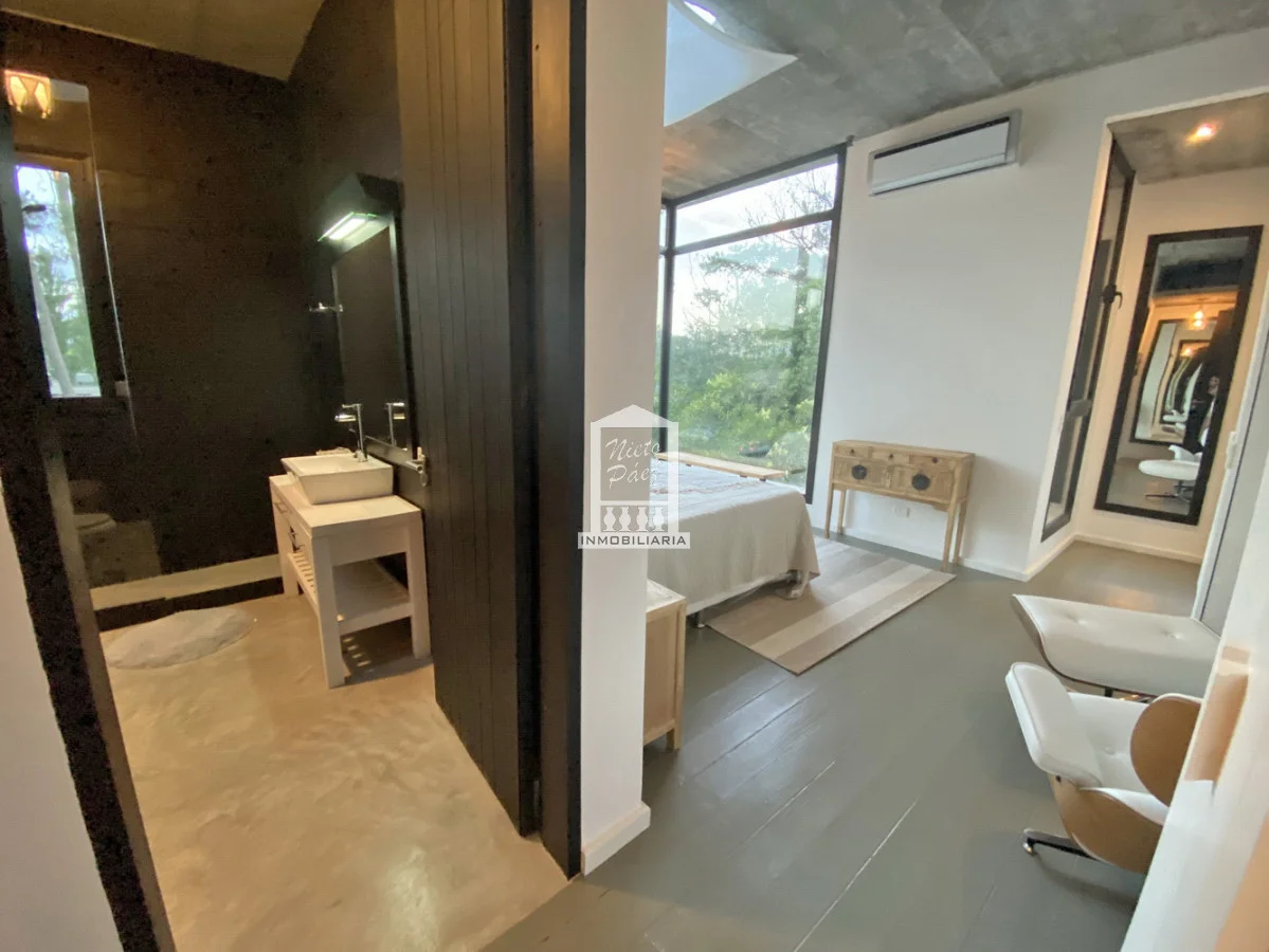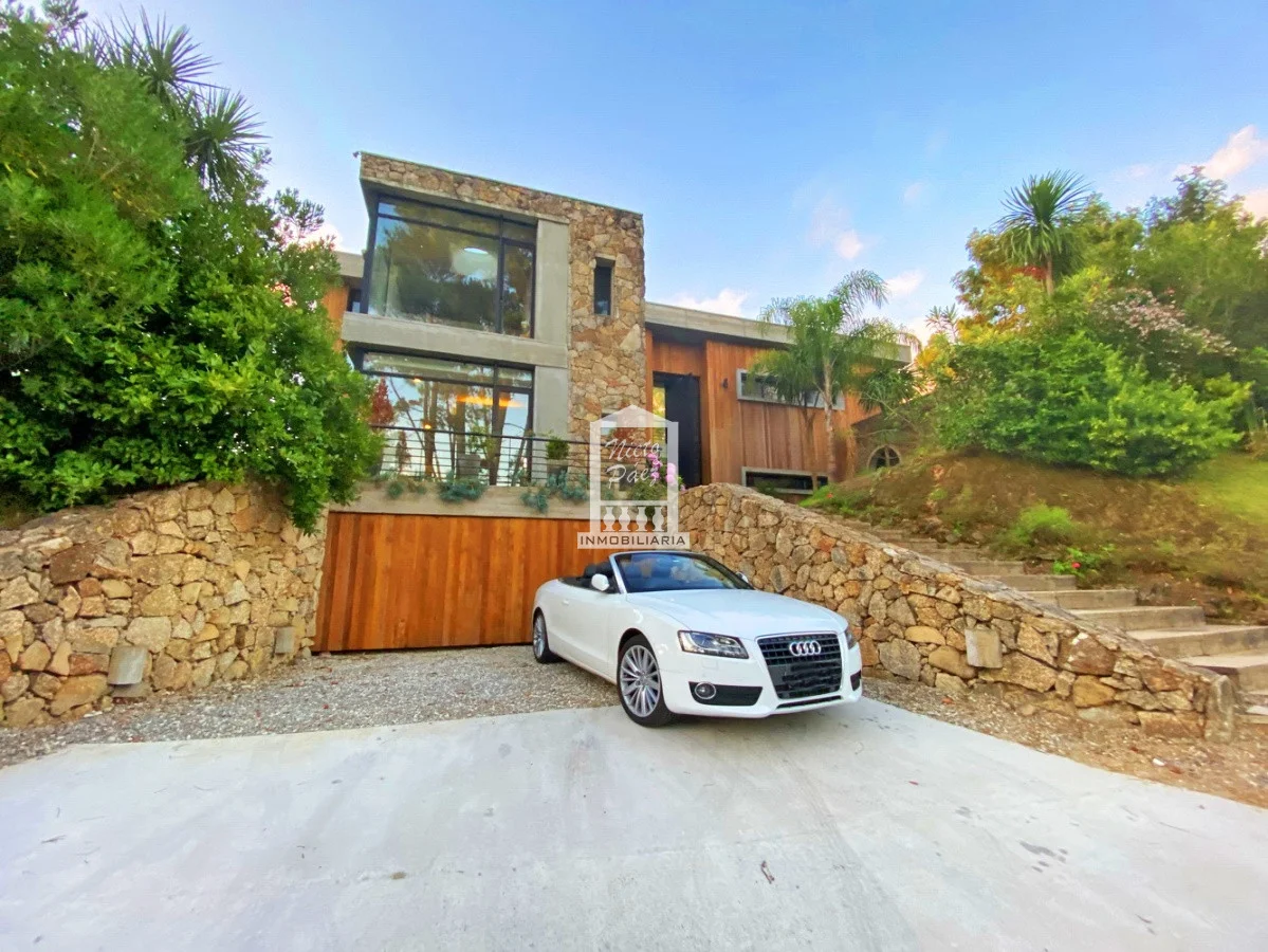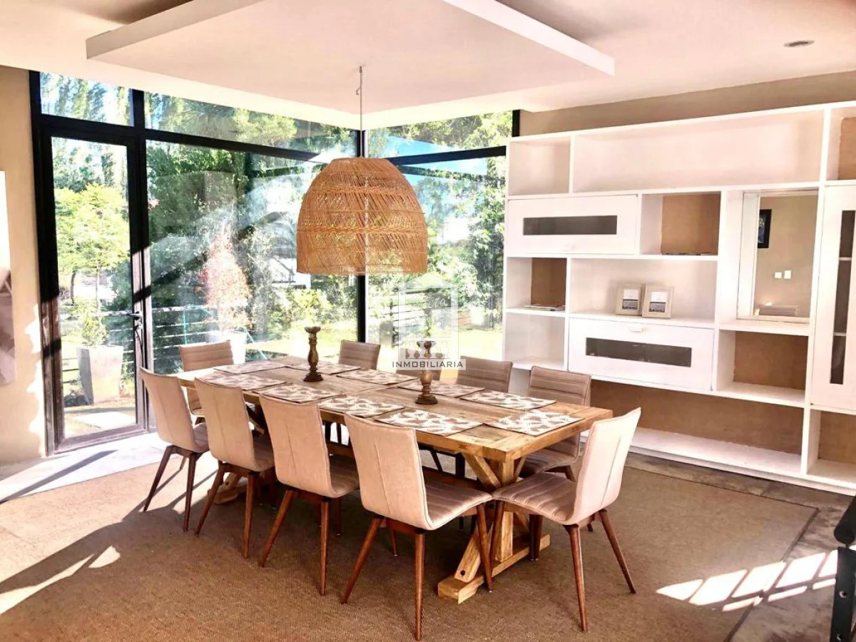 Esta espectacular casa de diseño, pronta para entrar, combina materiales nobles como piedra y madera de lapacho con una arquitectura moderna pensada para vivirla todo el año. El área social se destaca por un imponente living en doble altura, generando una gran sensación de amplitud y jerarquía, en conexión directa con el exterior.