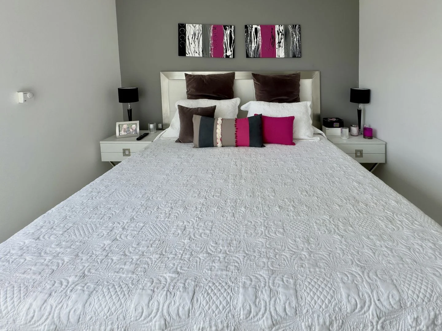 El dormitorio principal es en suite y cuenta con vestidor. Amplio y luminoso living comedor con cocina integrada y barra desayunadora. Segundo dormitorio con baño completo.