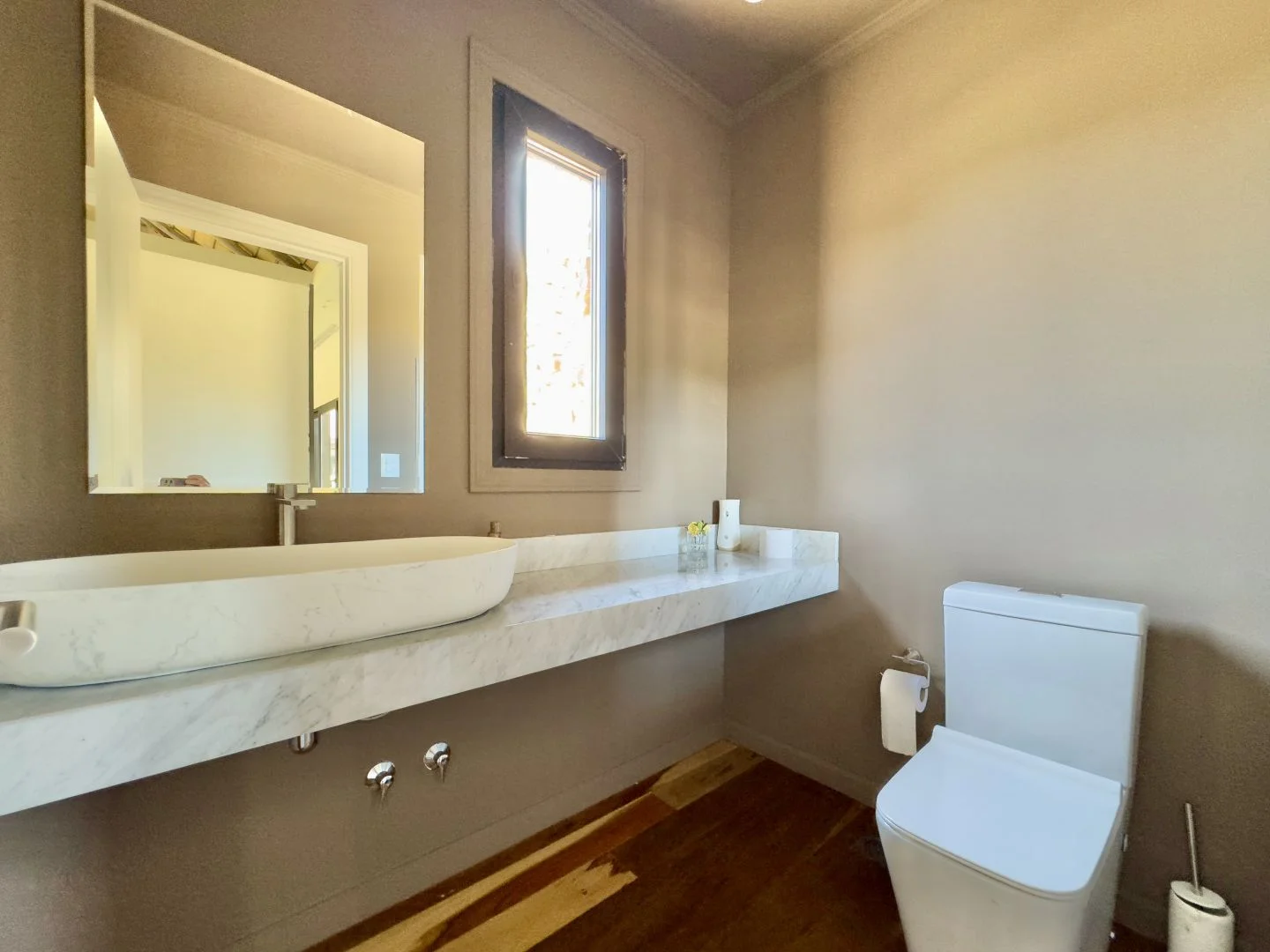 En el exterior, la propiedad se destaca por su generoso deck con galerías que integran distintos ambientes de living y comedor al aire libre, creando espacios ideales para recibir y disfrutar durante todo el año. La piscina, la barbacoa y el cuidado entorno verde potencian la experiencia, junto a privilegiadas vistas abiertas al atardecer.