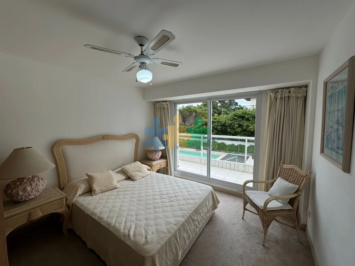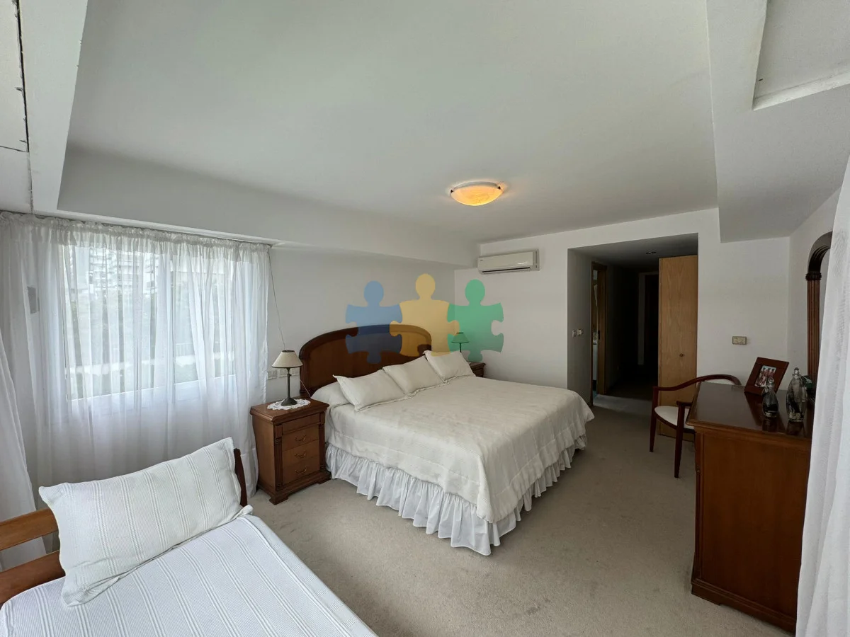 3 DORMITORIOS, 2 BAÑOS, 1 EN SUITE. DEPENDENCIA DE SERVICIOS CON BAÑO, GARAGE. SERVICIO DE MUCAMA Y DE PLAYA, PISCINA, SAUNA, GIMNASIO, PLAY ROOM, CANCHAS, PARRILLERO, VIGILANCIA.