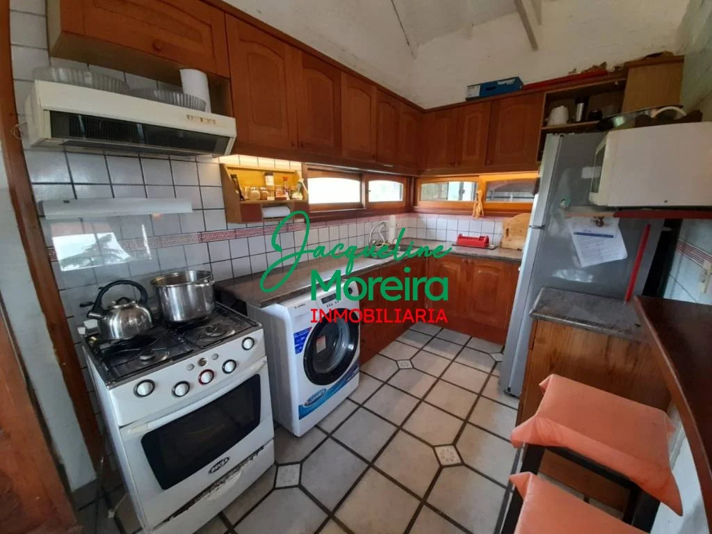 En planta alta un amplio y luminoso living-comedor con estufa a leña y salida al gran parrillero techado con una espaciosa terraza desde la cual se puede disfrutar de una hermosa vista de los cerros y la bahía. Desde la zona del comedor se puede acceder a una pequeña terraza con vista a los cerros. Cocina integrada con barra americana, muebles bajo mesada y aéreos. 1 baño completo.