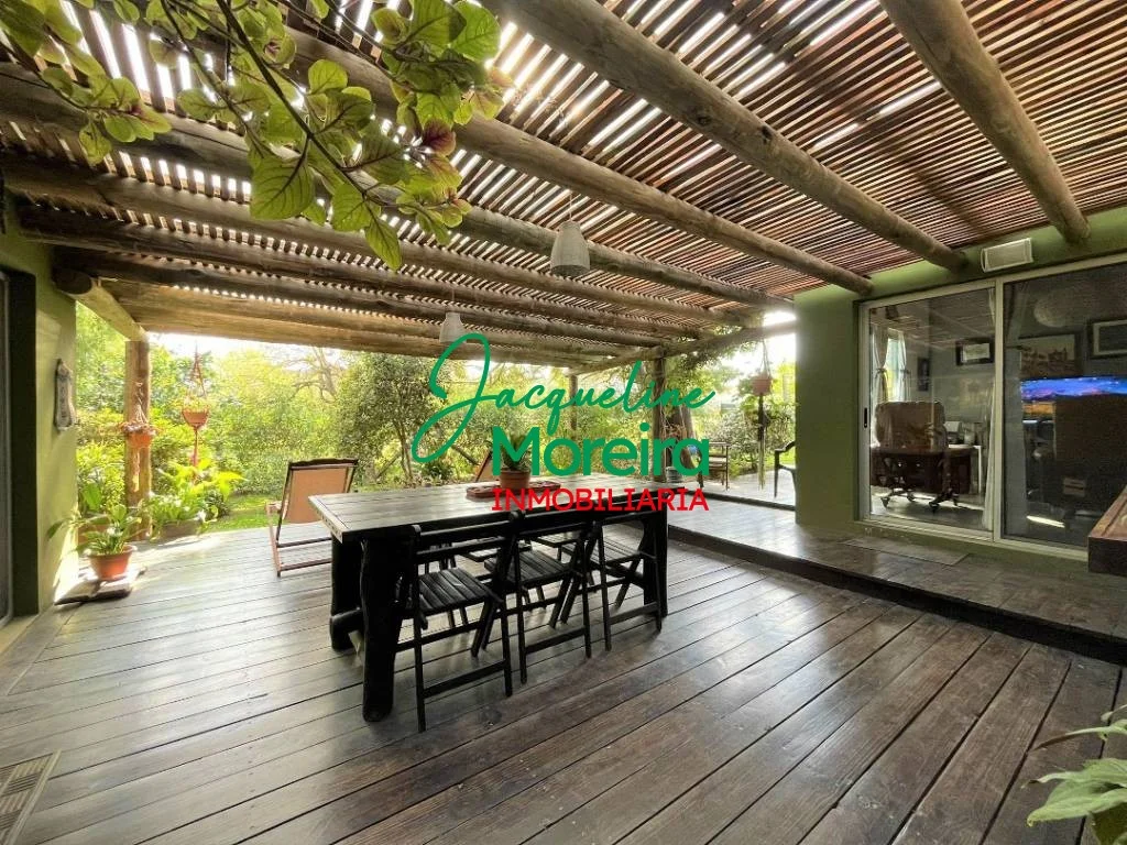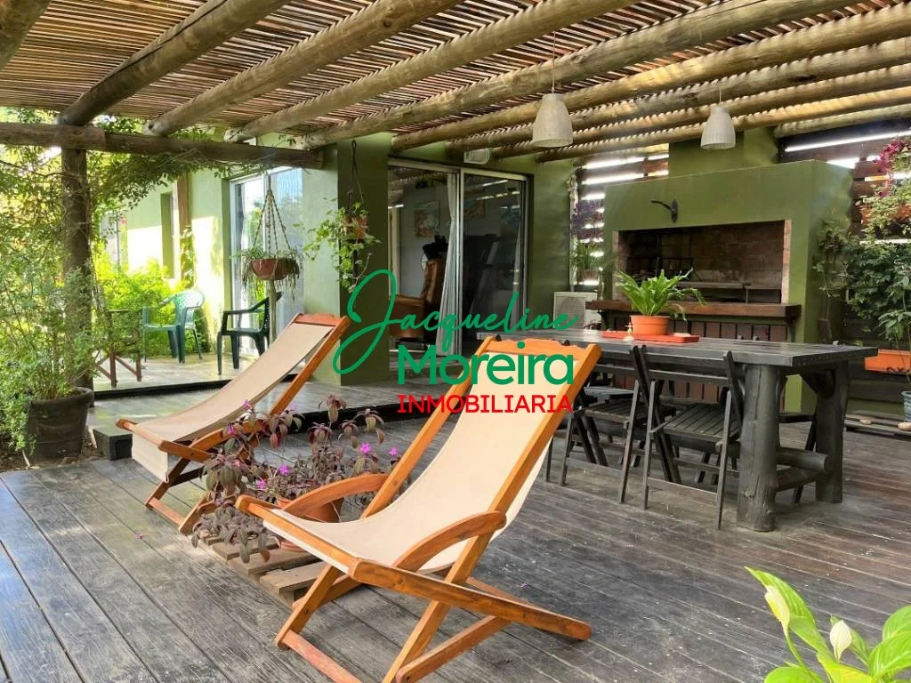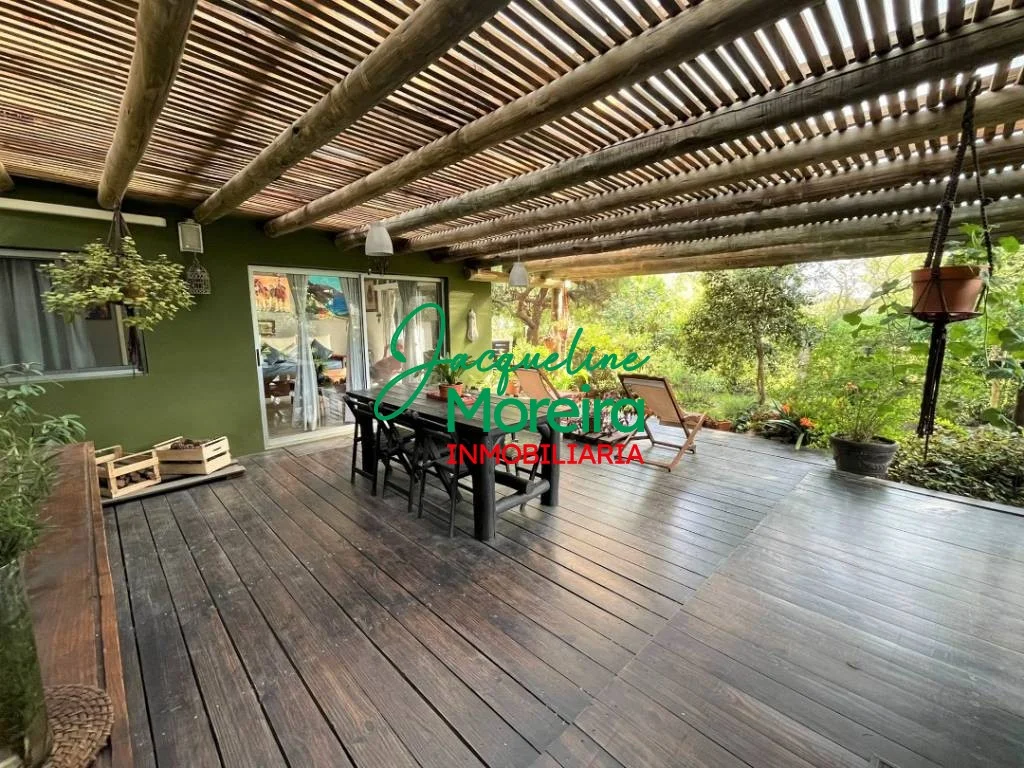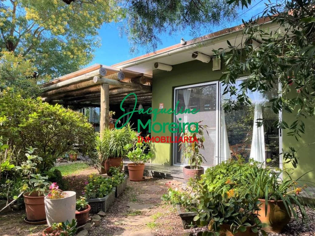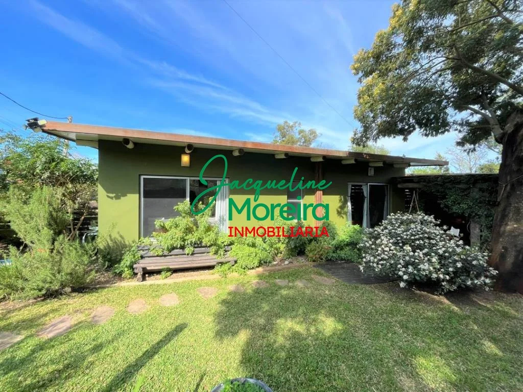 **C101509** \"VILLA CAMPESINO\" Casa en venta en Playa Verde de la ruta hacia el mar, con un jardín espectacular. Gran jardín diseñado por paisajista, con más de 100 especies entre florales, árbustos y cítricos. Gran cantidad de aves vienen a disfrutar de este oasis de naturaleza y la casa tiene varios espacios exteriores para compartir estas bellezas naturales. Construcción de paredes de ladrillos revocadas por dentro y por fuera, techo de isopanel. La casa se divide en dos módulos; principal con living, comedor y cocina totalmente equipada, todo en un mismo ambiente, con grandes puertas ventana hacia el jardín y al parrillero, que a parte de la gran vista aportan luminosidad y ventilación a todo el ambiente, 1 baño completo, y un cómodo dormitorio con placard empotrado. Segundo módulo separado por un amplio parrillero techado de 42 m², con un gran deck de madera, se integra perfectamente a la cocina y al jardín de la residencia. Este segundo módulo cuenta con; 1 dormitorio de tamaño medio, 1 baño completo y otro dormitorio que actualmente funciona como oficina. También este segundo módulo podría servir como casa de huéspedes. Exterior con garaje techado, zona de lavado y depósito. Se vende con equipamiento básico, se puede negociar precio amueblada y equipada.