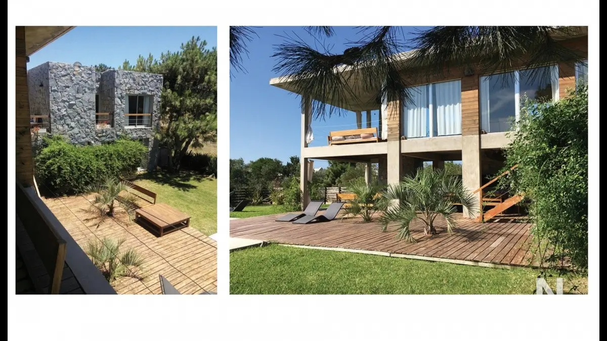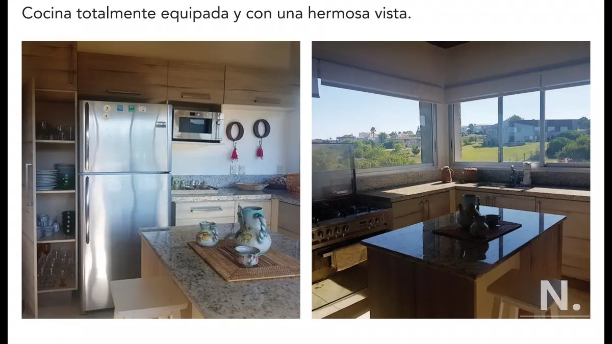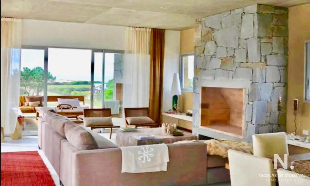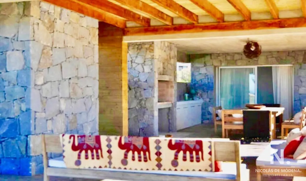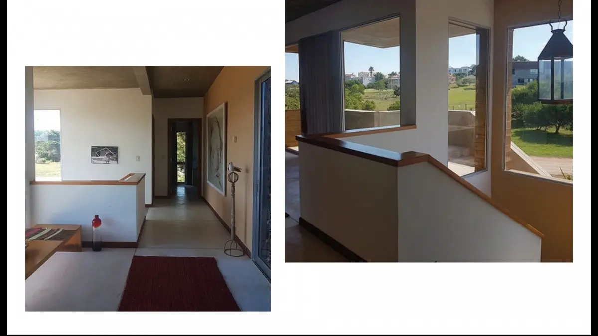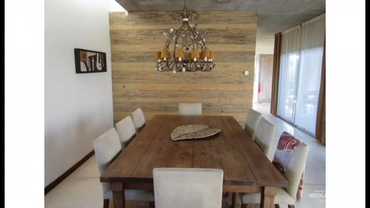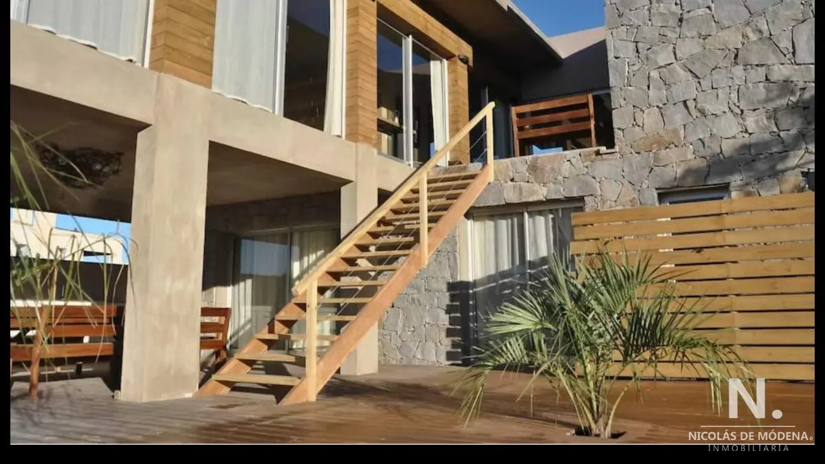 Planta Alta: Hall de entrada, gran living comedor, cocina completa, master suite, toillet, galería con Vista al mar, 2 chimeneas.