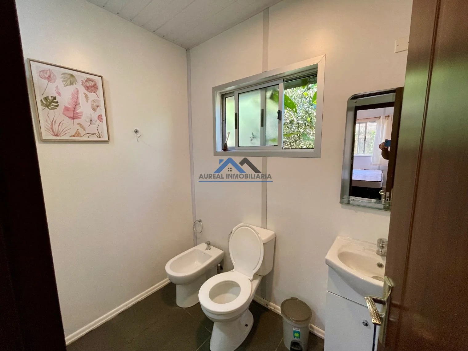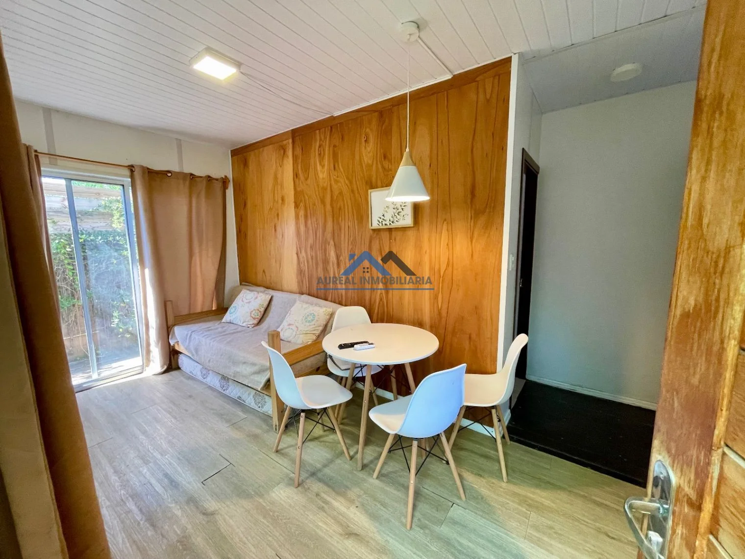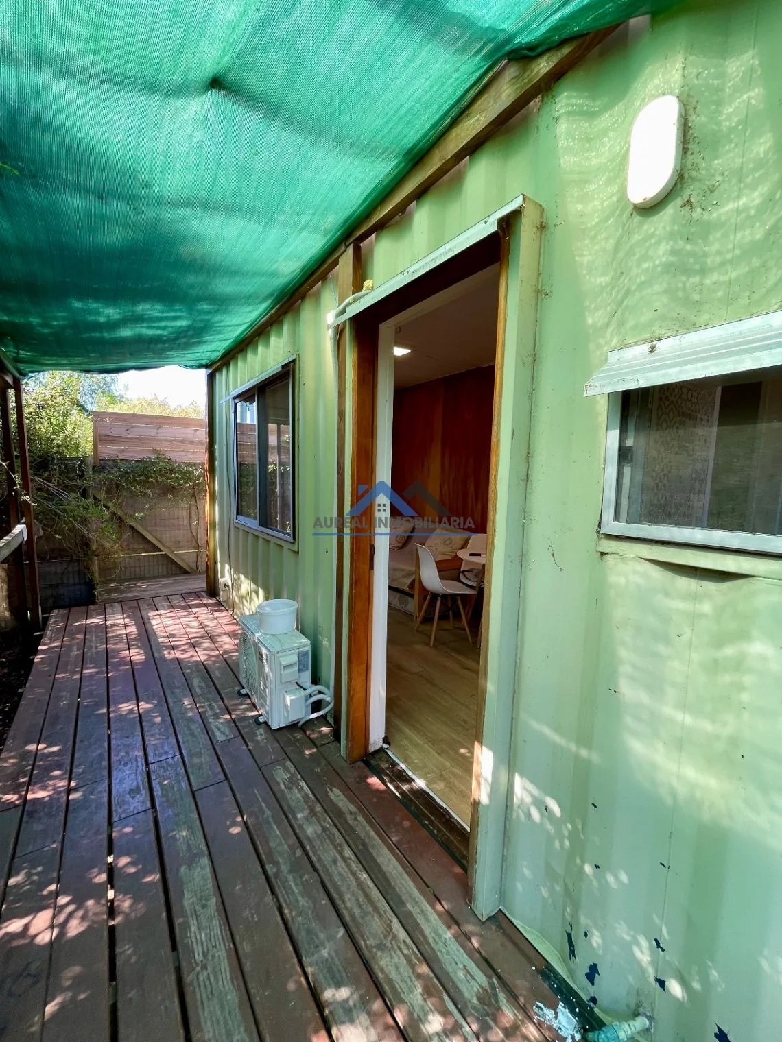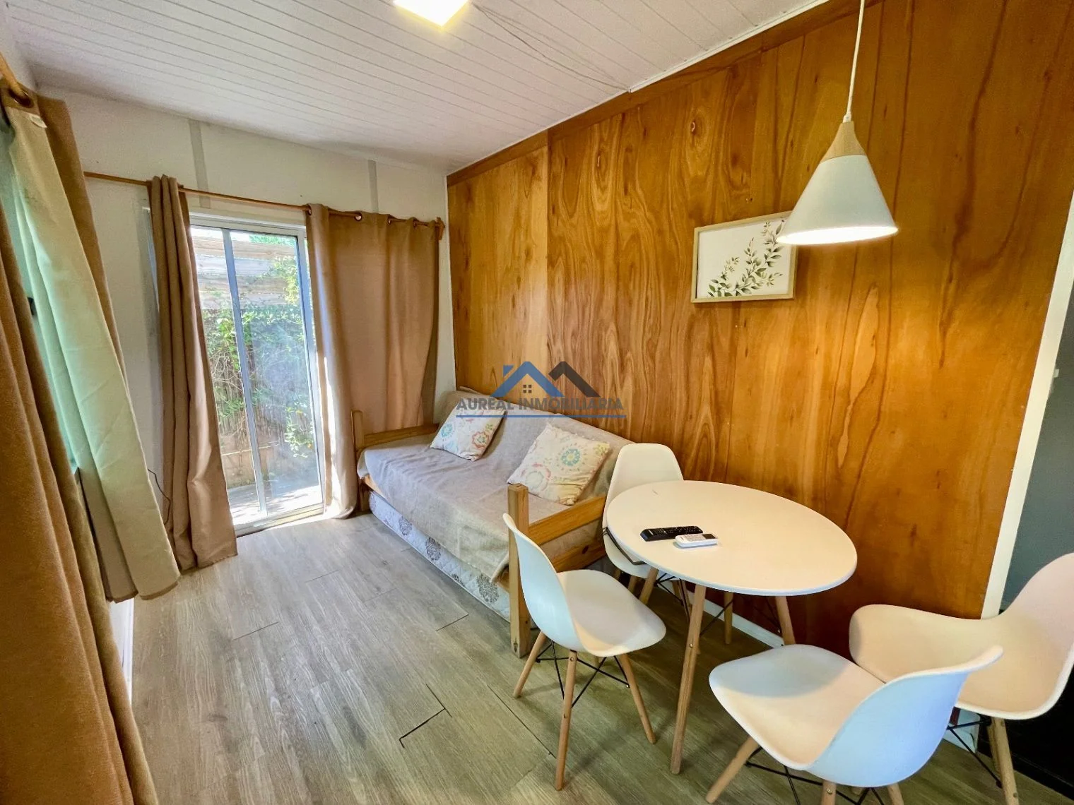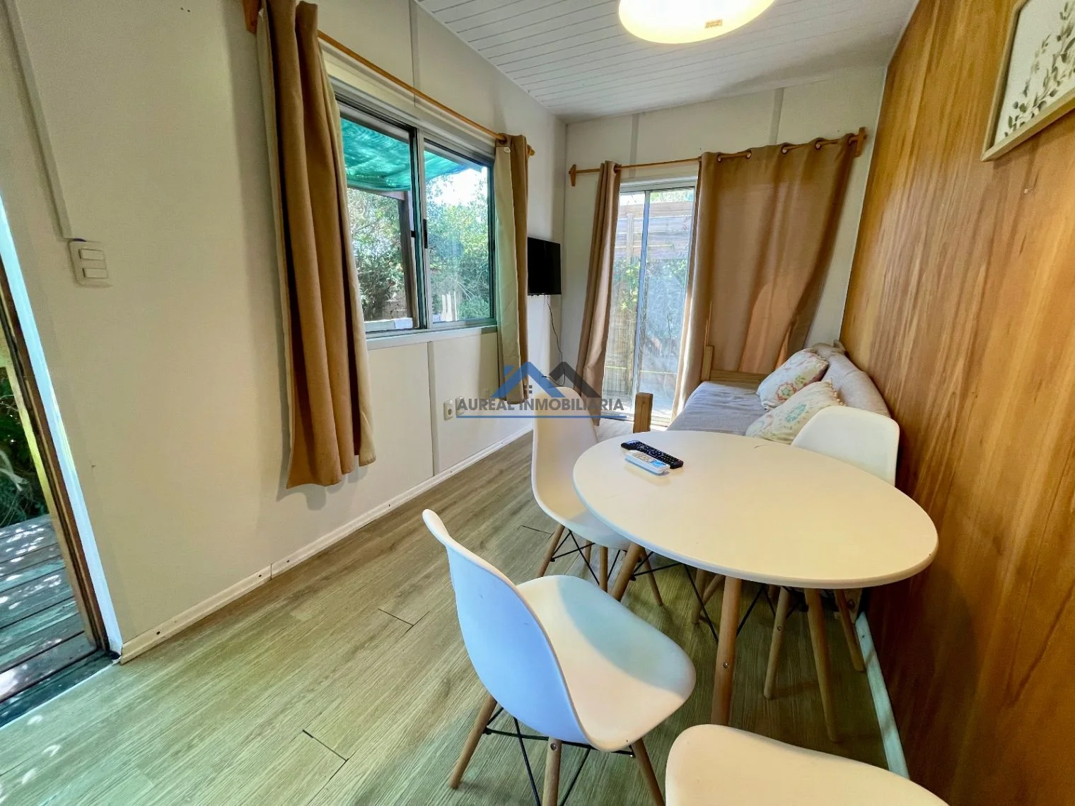 El interior de la propiedad incluye un luminoso y acogedor living comedor, una cocina equipada y un baño completo con mampara. La casa, orientada al sur, disfruta de una agradable circulación de aire y luz natural. Entre sus características adicionales, se destacan el aire acondicionado, el acceso a agua corriente, luz, internet y un área verde ideal para disfrutar al aire libre.
