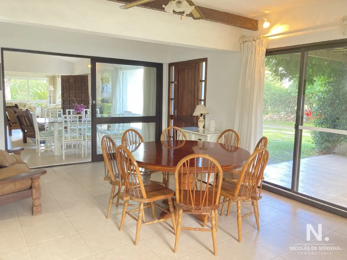 Muy buena casa, en barrio Marly con muy linda orientación, 3 dormitorios 3 baños, dependencia de servicio separada. Excelente condiciones. Casa en Marly - Punta del Este Ubicado a 2000 metros del Mar. Cuenta con 3 Dormitorios 3 Baños 3 Suites , con capacidad para 8 personas , 7 camas Cocina : Definida, Living , Comedor Terreno : 1520 m2 Edificado : 248 m2 Consulte con nuestros asesores. Referencia Interna : Tera-9214