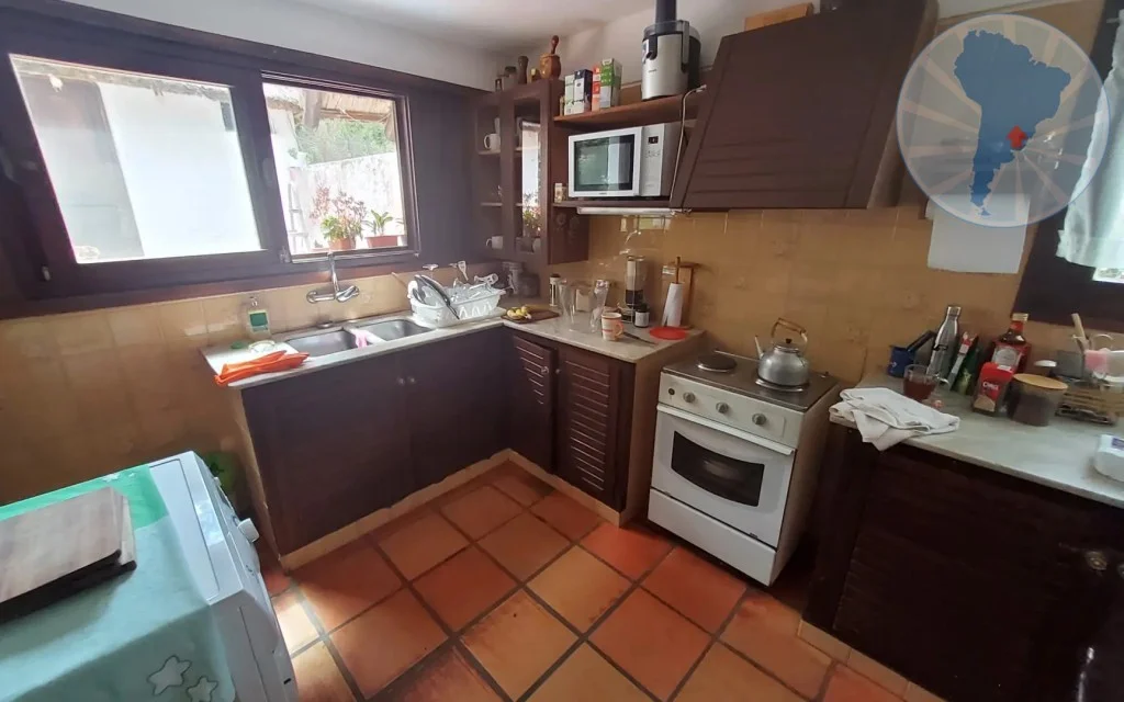 La cocina, amplia y funcional, está equipada con cocina eléctrica y cuenta con conexión para lavarropas.